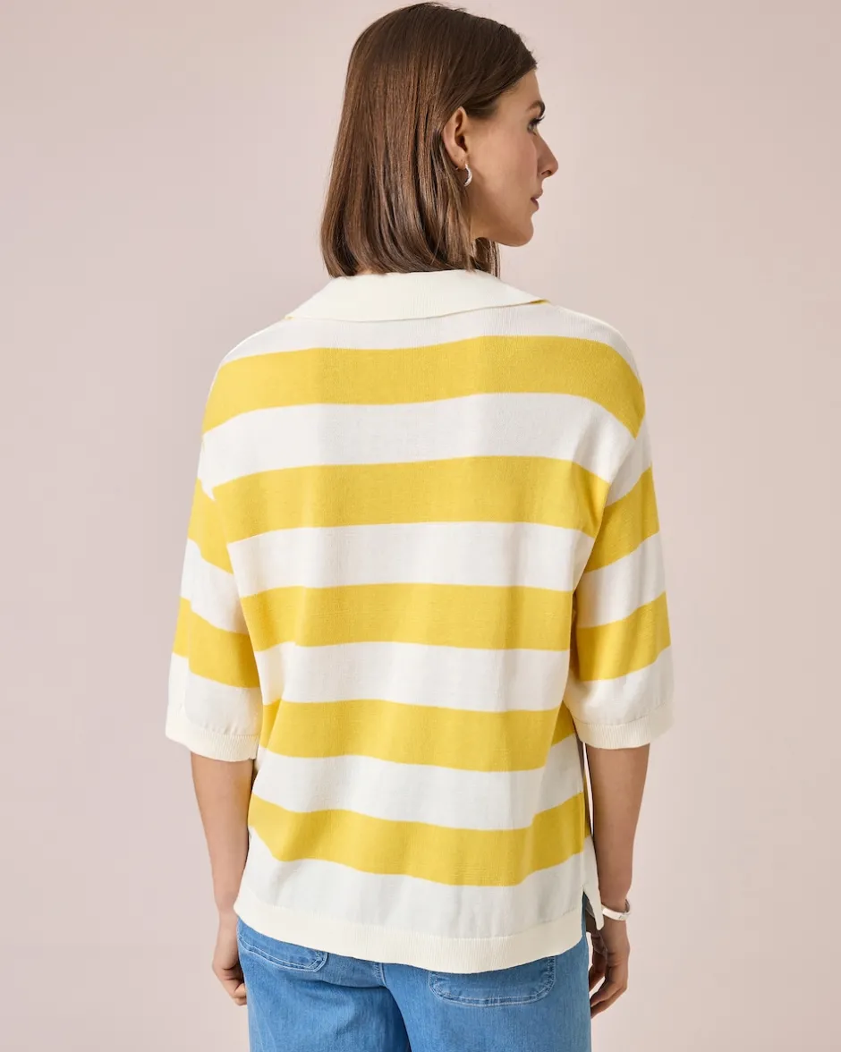 Setzen Sie modische Akzente mit diesem Pullover in kontraststarker Querstreifen-Optik. Der extra breite Bicolor-Ringel-Look verleiht dem Pullover eine dynamische Ausstrahlung. Mit seinem Kurzarm ist der Pulli perfekt für die warmen Tage des Jahres. Die figurumspielende Passform setzt Ihre Silhouette gekonnt in Szene ohne aufzutragen und kann dabei auch eventuelle Pölsterchen problemlos kaschieren. Kombinieren Sie den Pulli mit einer eleganten Hose für das Büro oder mit einer Jeans für einen lässigen Weekend-Look.