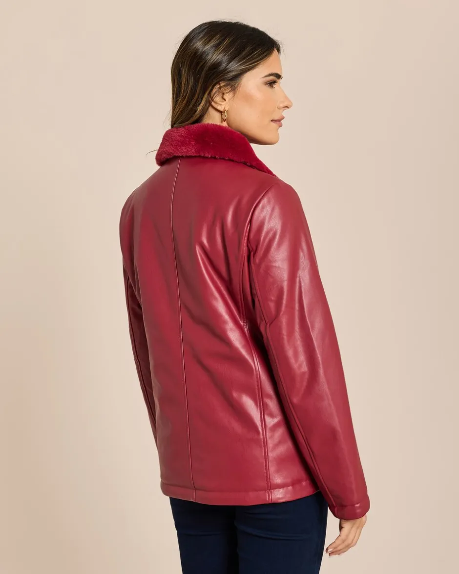 Stilvolle Lederimitatjacke mit Webpelzkragen