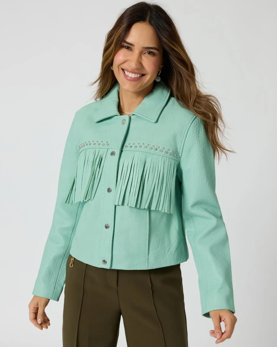 Style-Akzent: Designer-Lederjacke mit Fransen
