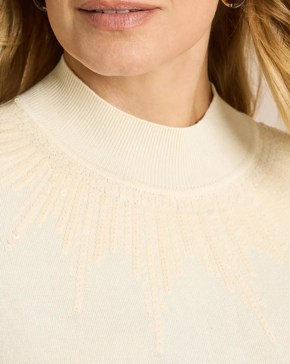 Stilvoller Stehkragen-Pullover mit Pailletten-Akzent