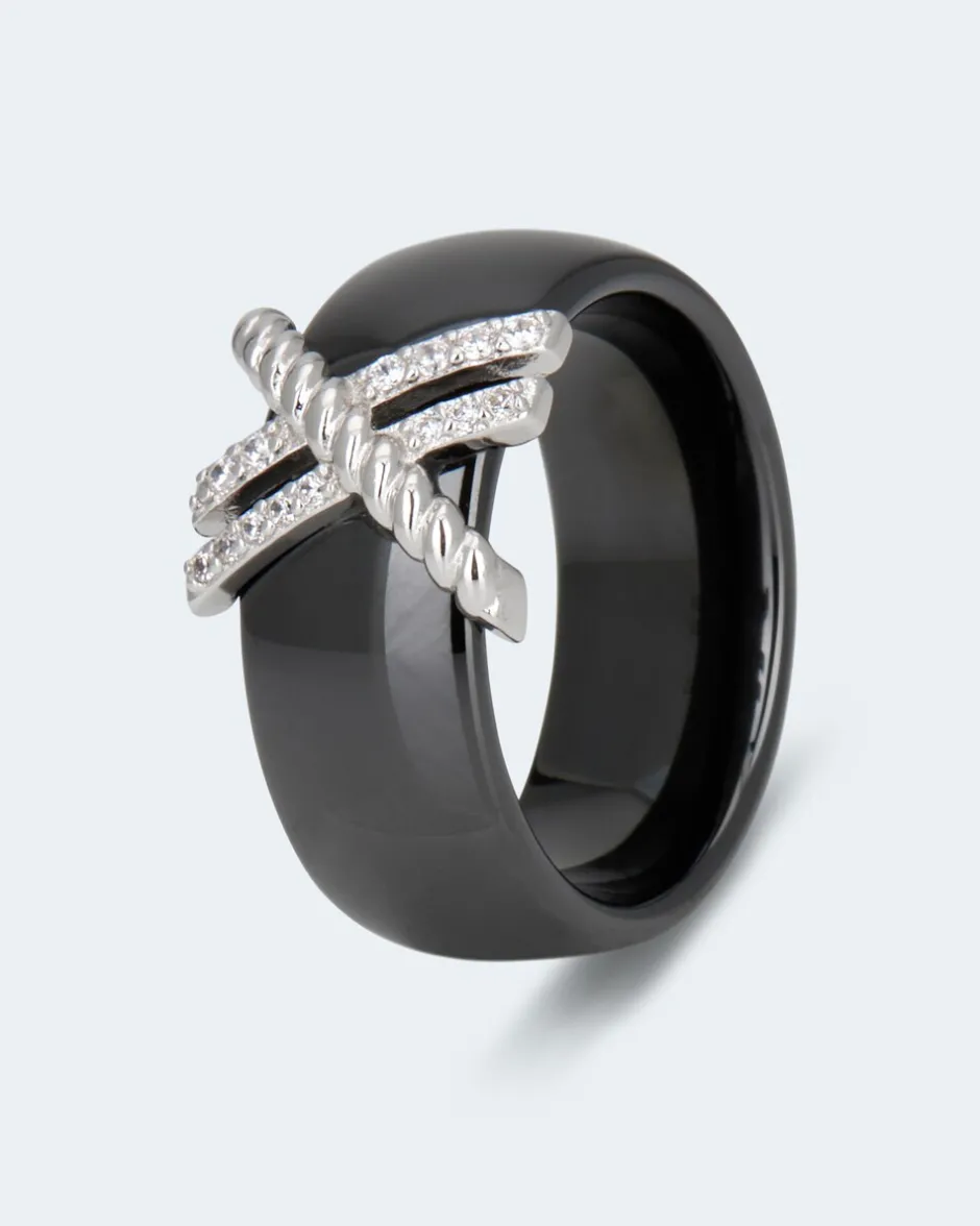 Hier kommt ein Ring für alle Fans extravaganten Modeschmucks. Seine Besonderheit ist das Design in schwarzer Keramik, akzentuiert durch überkreuzte silberfarbene Elemente. Für eine hübsche Glamour-Note sorgen dabei die funkelnden Zirkonia-Steine in akkuratem Facettenschliff. Sie schenken sich hier ein elegantes und zugleich modernes Schmuckstück, das Sie sicher immer wieder gerne tragen werden.