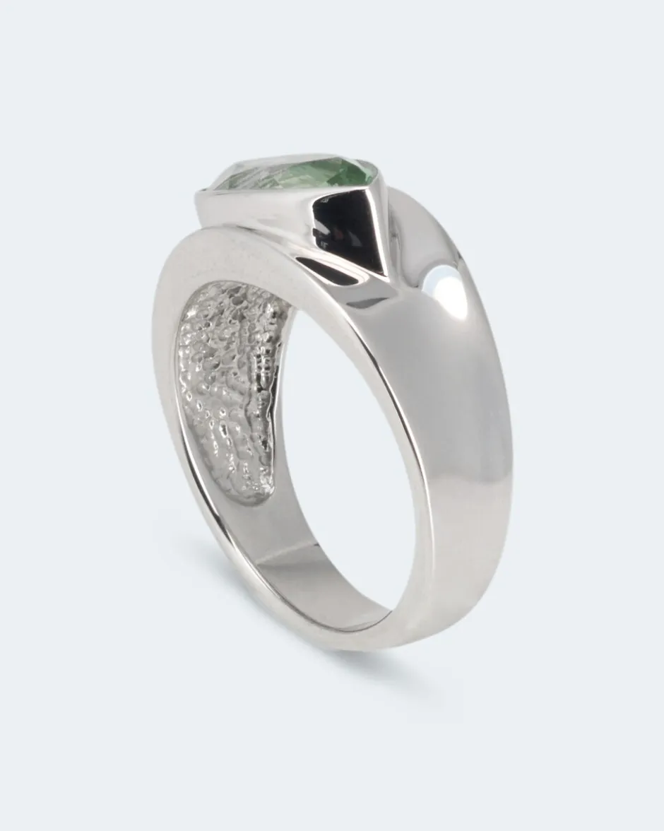 Der Ring aus rhodiniertem Silber im Weißgold-Look ist mit einem Fluorit in Grün ausgefasst. Der Fluorit begeistert mit einer raffinierten Navette-Form. Der Edelstein ist zudem im Facettenschliff veredelt, sodass das herrliche Grün in allen Nuancen schillert. Der leuchtende Edelstein-Solitär wird in einer sicheren Zargenfassung gehalten. Mit diesem charmanten Ring werten Sie Ihren Look auf, egal, ob Sie ein modisches Outfit tragen oder eine elegante Abendgarderobe.
