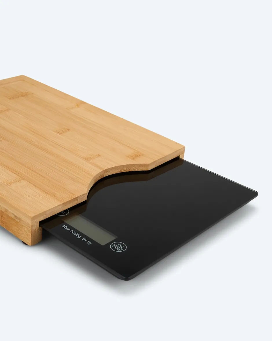 Eine pfiffige Produkt-Idee präsentiert Cucinella mit dieser Kombination aus Schneidebrett und innenliegender Waage. So sparen Sie Platz in der Küche, zudem ist die komplett herausnehmbare Waage unmittelbar zur Hand, wenn sie gebraucht wird. Perfekt etwa beim Backen aber auch beim Kochen, um schnell und einfach die richtige Menge nach Rezept zu schneiden. Das Brett ist aus Bambus und geölt. Bambus hat von Natur aus antibakterielle Eigenschaften und kann damit neben dem edlen Design auch in Hygienefragen punkten. Anders als andere Holzbretter. Das Brett ist nicht spülmaschinengeeignet.
