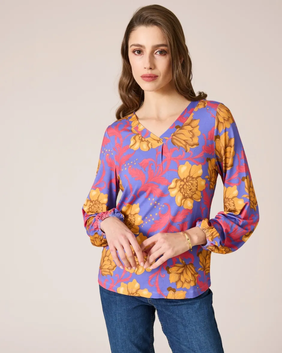 Typisch Marcel Ostertag: Diese hinreißende Shirtbluse kombiniert einen expressiven Print mit raffinerten Fashion-Details. So zeigt der feminine Ausschnitt eine dekorative Falte und die langen Ärmel sind in aparter Ballonform geschnitten. Stylen Sie den Look zu Jeans und Boots, aber auch zu schicken Stoffhosen und Highheels – das Ergebnis wird immer top aussehen. Aus feiner, farbbrillanter Viskose.