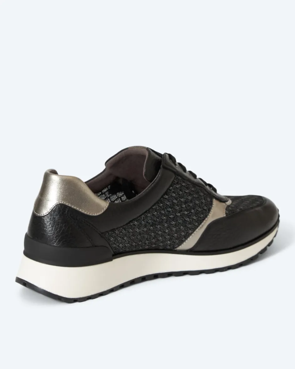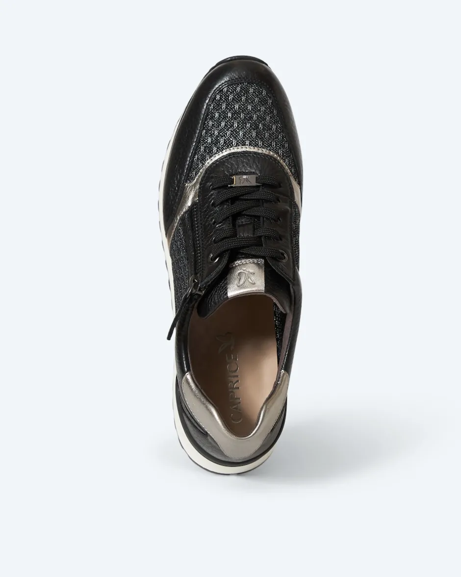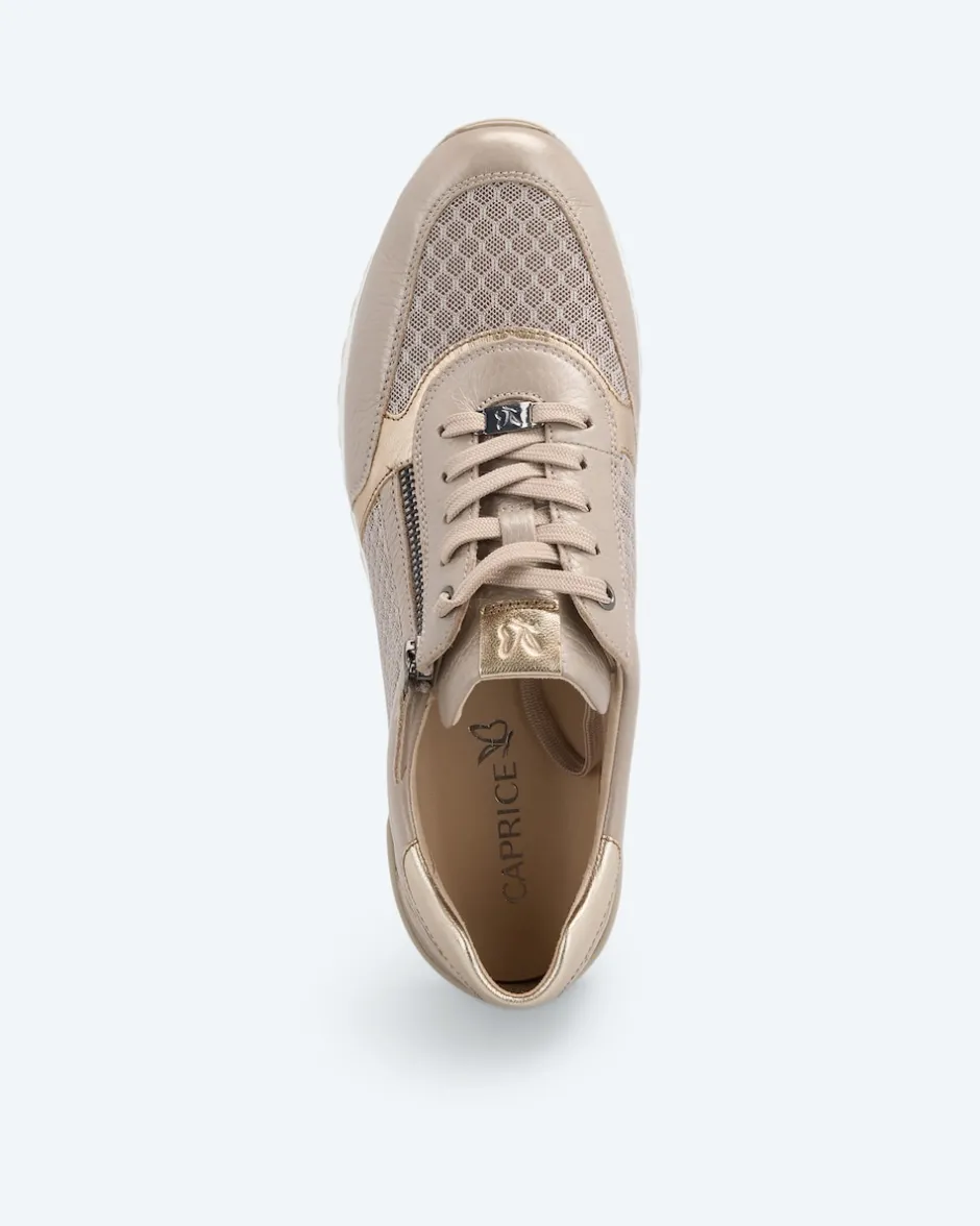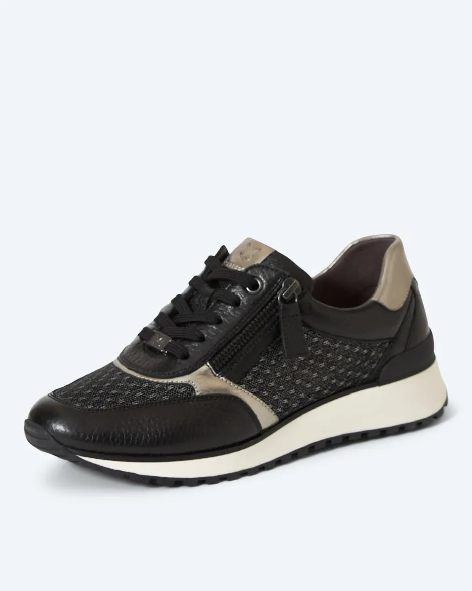 Der Sneaker aus Hirschleder bringt in Sachen Komfort und Design alles mit, was frau sich wünschen kann: Das weiche Hirschleder ist im Mix mit atmungsaktivem und elastischem Mesh verarbeitet. Die Kombination aus seitlichem Reißverschluss und Schnürung sorgt für einen besonders bequemen Ein- und Ausstieg sowie guten Sitz. Der dezente Einsatz von Details im Metallic-Look gibt dem Schuh seine elegante Ausstrahlung. Von den inneren Werten wie der herausnehmbaren OnAir-Sohle mit Leder ganz zu schweigen. Wenn Sie einen Schuh mit Charisma suchen, der Ihren Füßen schmeichelt, haben Sie ihn hier gefunden. Übrigens erhalten Sie diesen Hingucker exklusiv bei HSE.