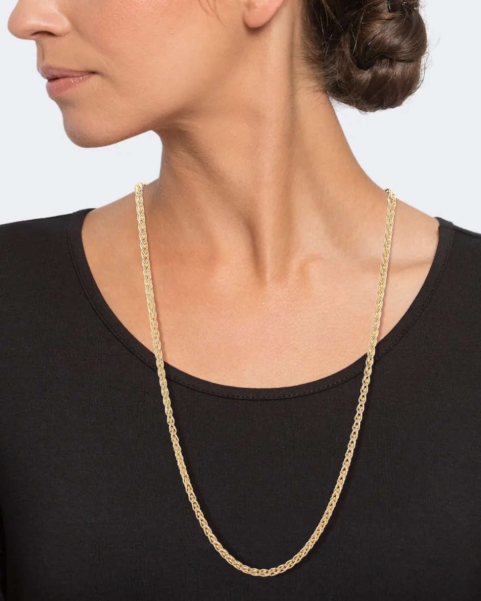 Eine Kette, die sich sehen lassen kann – solo oder mit einem Anhänger Ihrer Wahl. Das klassische Zopfmuster-Design wirkt massiv und sehr repräsentativ. Wahlweise silberweiß rhodiniert oder aufwendig gelbgoldplattiert. Die anmutige Zopfkette ist in drei Längen erhältlich – für jeden Hals das richtige Modell. Tipp: Es sieht auch toll aus, verschiedene Längen dieser Zopfkette miteinander zu kombinieren.