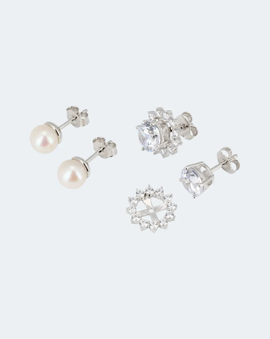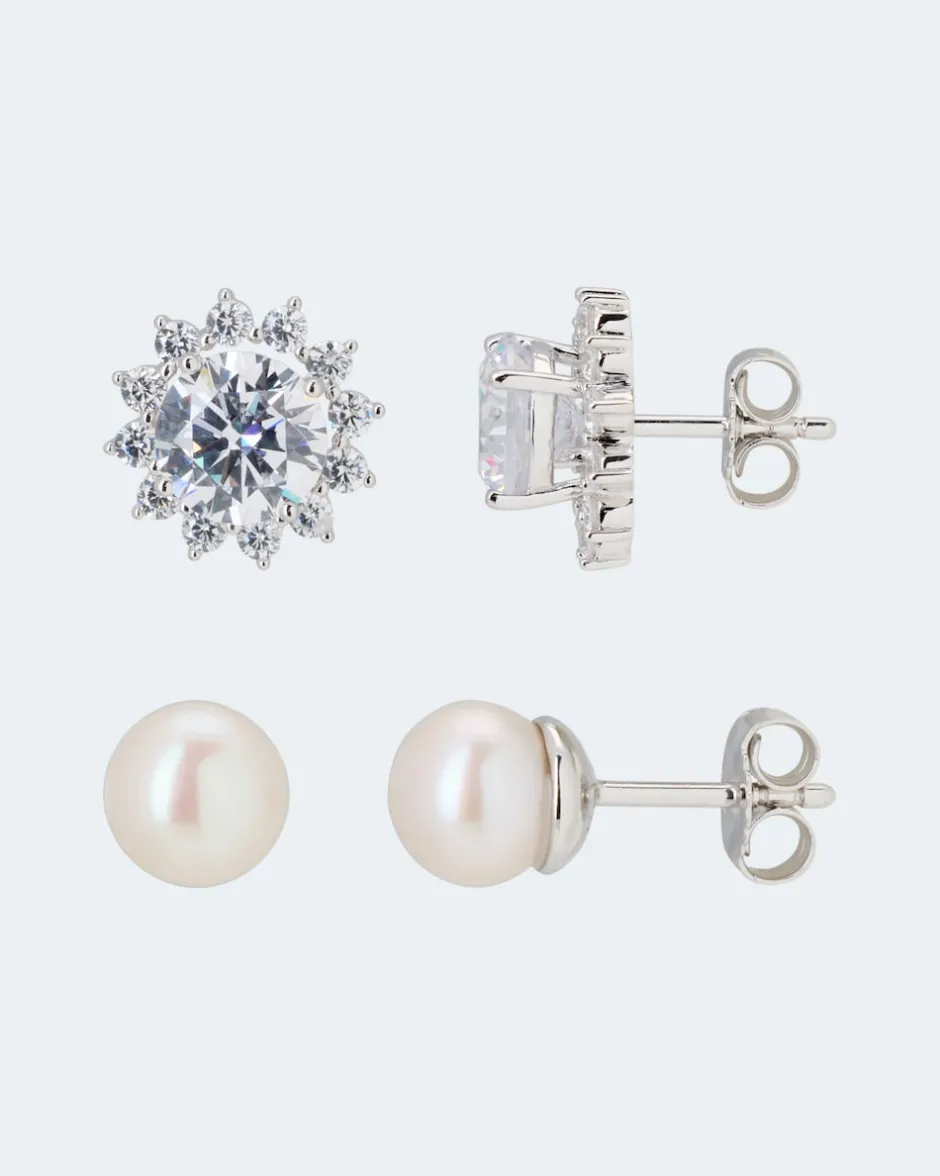 Sie lieben Schmuck, den garantiert nicht jede hat? Dann sind diese zwei Paar Silber-Ohrstecker von Judith Williams wie für Sie gemacht. Ein Paar ist mit je einer weißen Süßwasserzuchtperle besetzt. Die runden Perlen sind ungeschliffen, poliert und begeistern durch ihren schönen Lüster. Das andere Ohrstecker-Paar in Sternform ist mit je 13 weißen Zirkonia ausgefasst. Dier Zirkonia sind ebenfalls in Sternform arrangiert und funkeln dank ihrer Facettierung unwiderstehlich bei jedem Lichteinfall.
