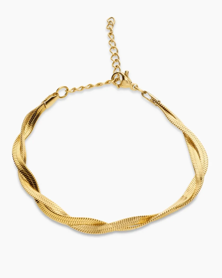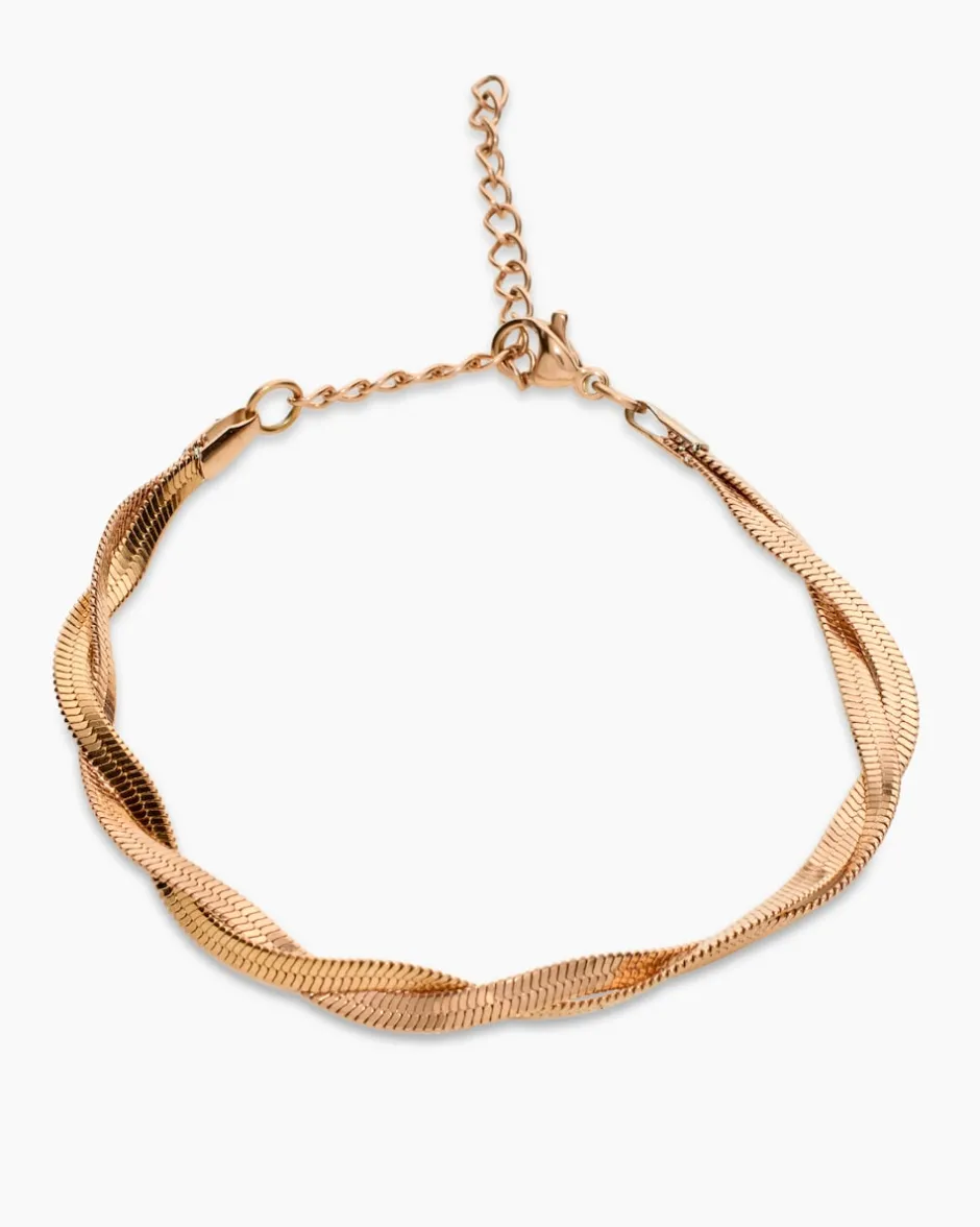 Das Armband aus hochglanzpoliertem Edelstahl steht Ihnen in drei Varianten zur Verfügung: gelbvergoldet, versilbert oder rosévergoldet. Das stylische Accessoire besteht aus zwei Strängen, die ineinander zu einem Heringbone-Muster verflochten sind. So entsteht ein toller Effekt aus Glanz und Glamour. Das Armband ist ca. 17 cm lang und ist mit einem 5 cm Verlängerungskettchen ausgestattet. Verschlossen wird das Accessoire mit einem sicheren Karabiner. Schmuck, den Sie jeden Tag tragen können, weil er zu allem passt.