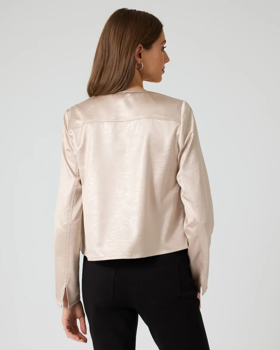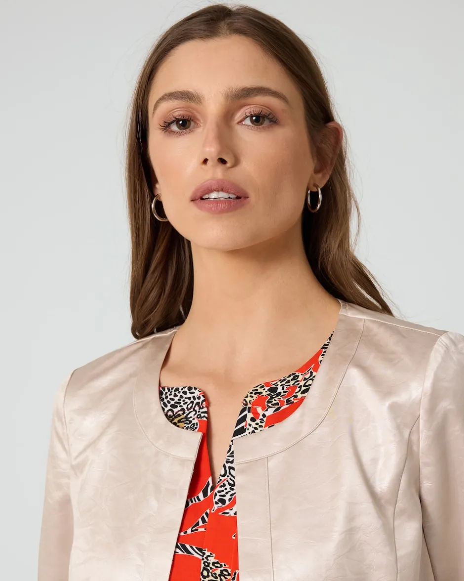 Wenn Sie in der neuen Modesaison noch ein paar stylische Oberteile für schnelle und elegante Kombis brauchen können, dann sind Sie bei der Couture Line genau richtig. Mit diesem raffinierten Teilchen etwa laden Sie jedes Outfit mit Extra-Glamour auf. Die Blusenjacke in offener Form ist kurz geschnitten und schwingt so lässig um Ihre Taille. Die Uni-Optik in edel glänzendem Silber passt perfekt zu den unterschiedlichsten Hosen. Versuchen Sie es doch mal mit einer knackigen schwarzen Röhre und hohen Stiefeletten – schon haben Sie einen unwiderstehlichen Hingucker-Look kreiert.