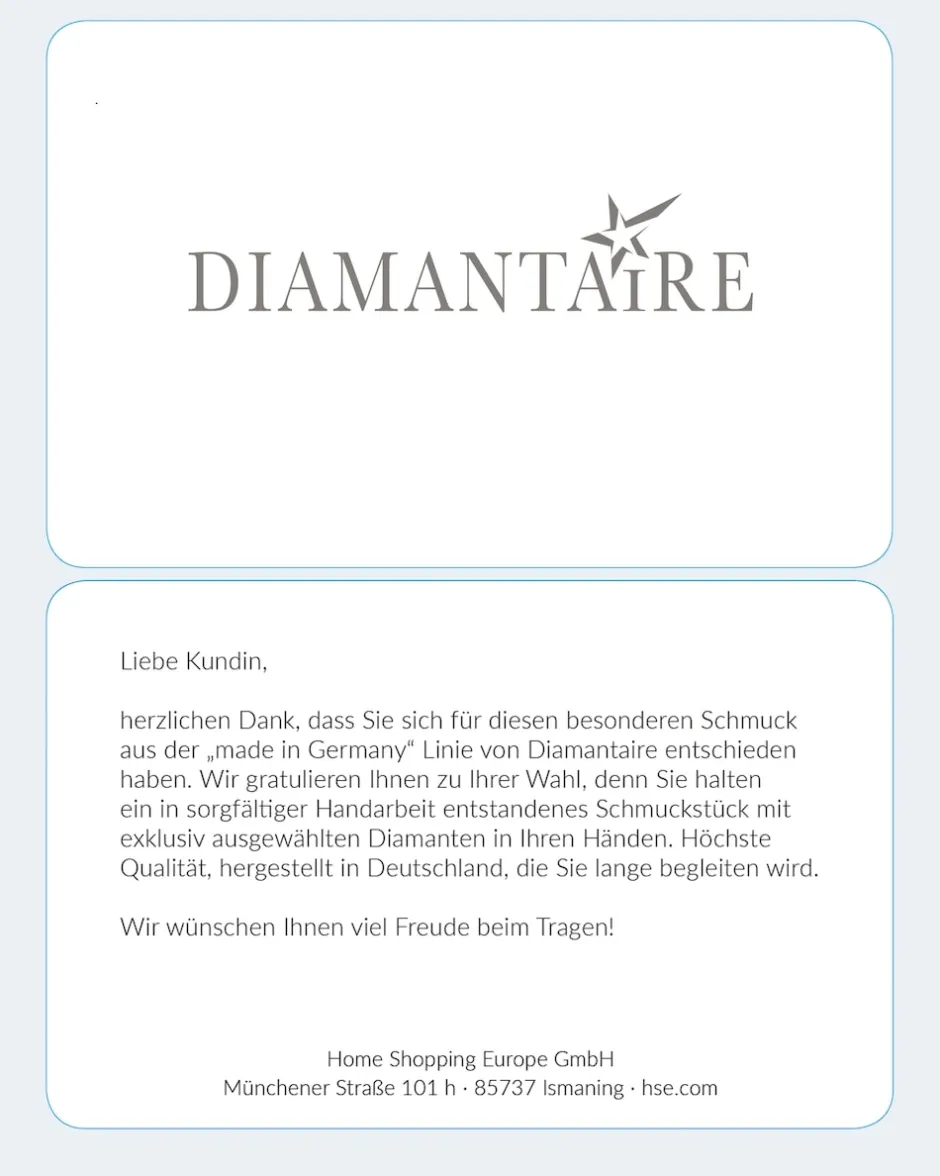 Dieser Ring aus der Diamond Collection wird in Deutschland für Sie gefertigt. Was die Qualität betrifft, gehen wir keine Kompromisse ein. Aus diesem Grund wird der Ring von unserer Qualitätssicherung und seitens des Lieferanten strengsten Prüfprozessen unterzogen. Unter anderem beinhalten unsere Prüfprozesse Prüfungen auf Konformität mit den Bestimmungen der Schweizer Edelmetallkontrollgesetzgebung.