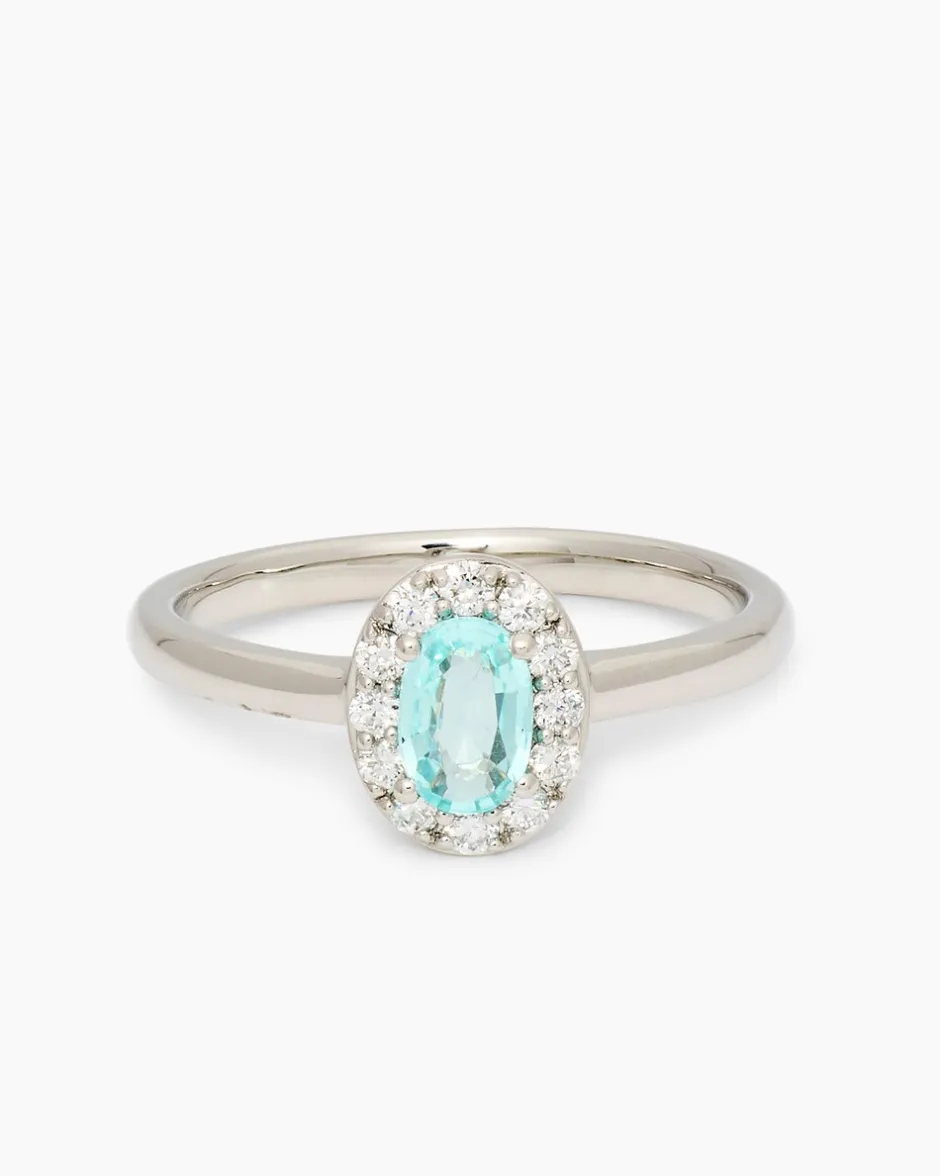 Kühle Schönheit: Herrlicher Platinring mit Paraiba Turmalin & Brillanten