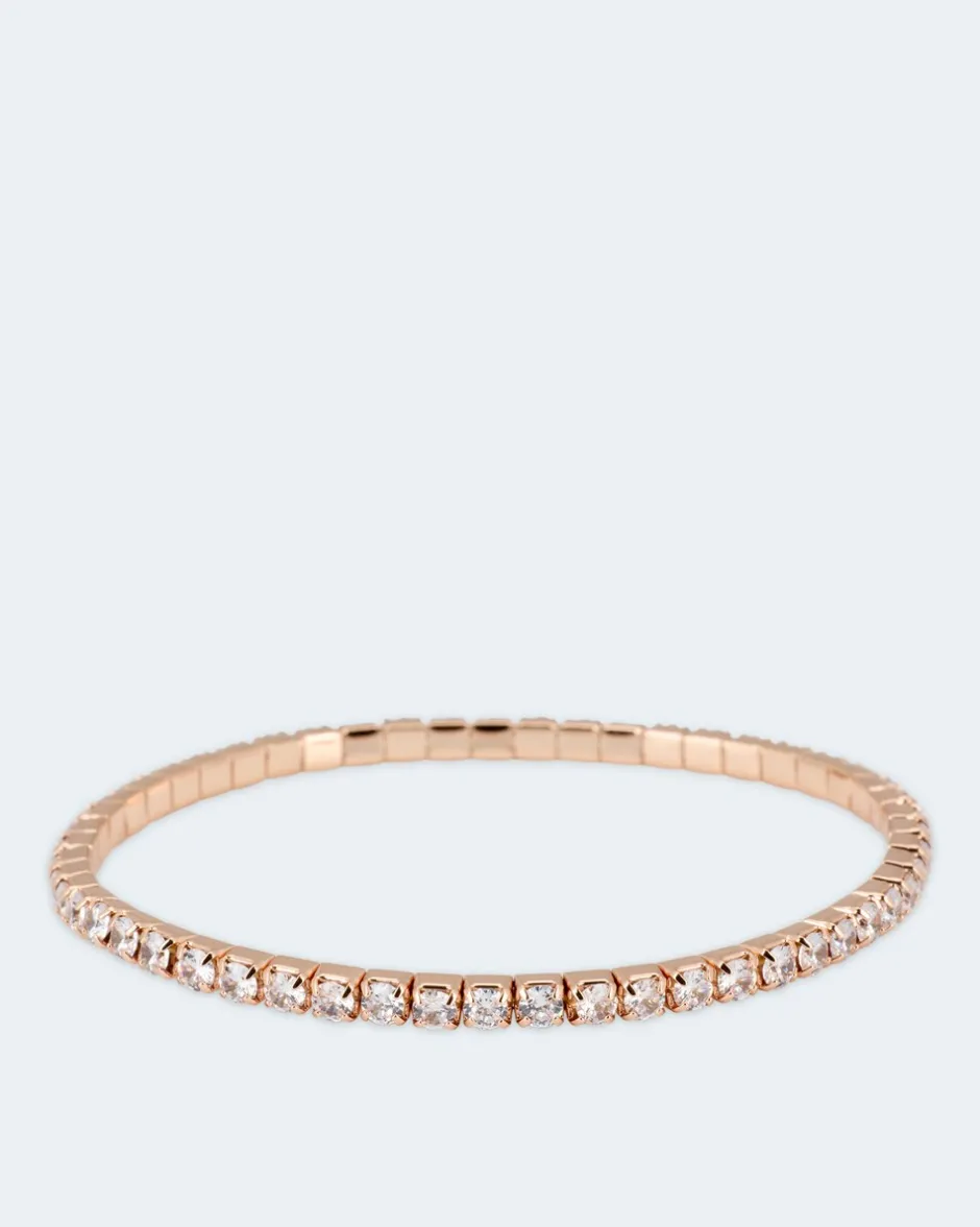 Mit diesem Armband am Handgelenk bekommt Ihr Outfit einen glitzernden Touch. Das Armband ist dicht an dicht mit 54 oder 61 weißen Zirkonia ausgefasst, je nach bestellter Länge. Alle Steinchen sind sorgfältig facettiert und entfachen so ein Funkelfeuerwerk bei jeder Ihrer Bewegungen. Praktisch: Das flexible Armband hat keinen Verschluss, schieben Sie es einfach über Ihre Hand. Schon sitzt es bequem und sicher an Ihrem Handgelenk. In zwei Längen und Legierungen zur Wahl.