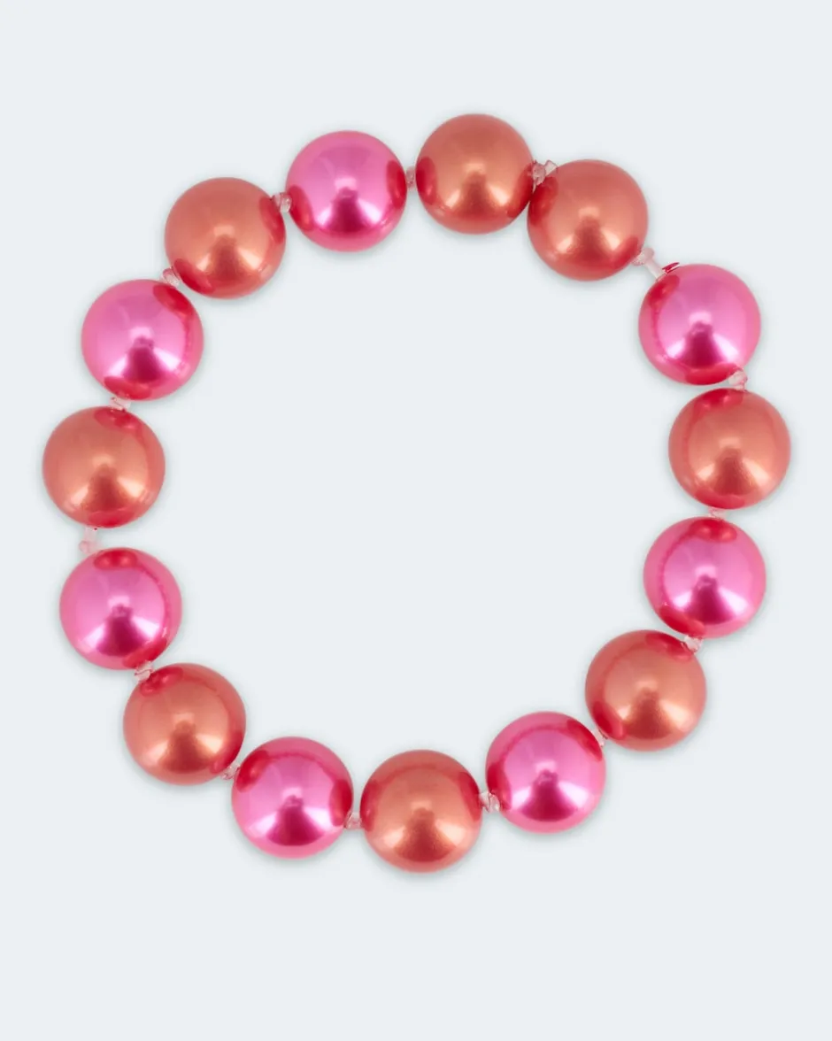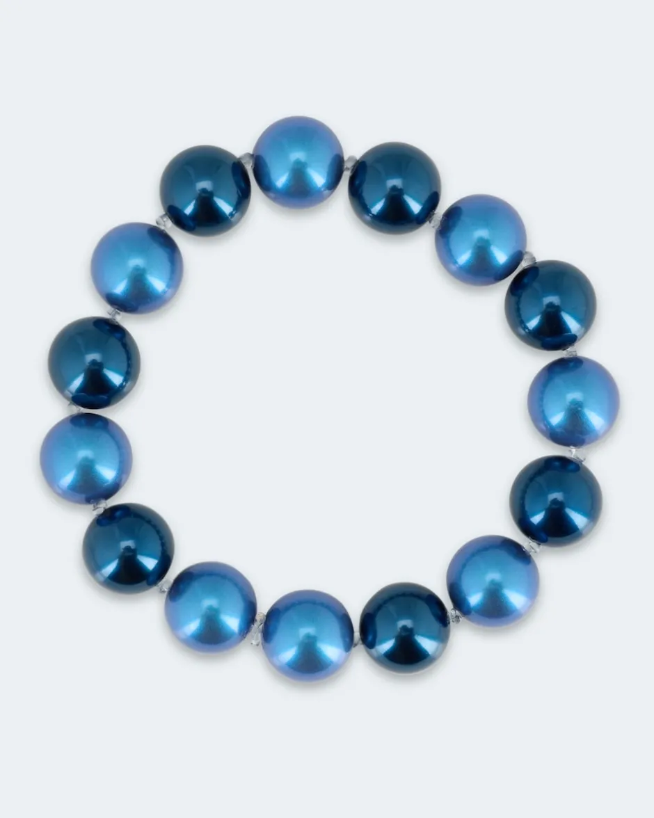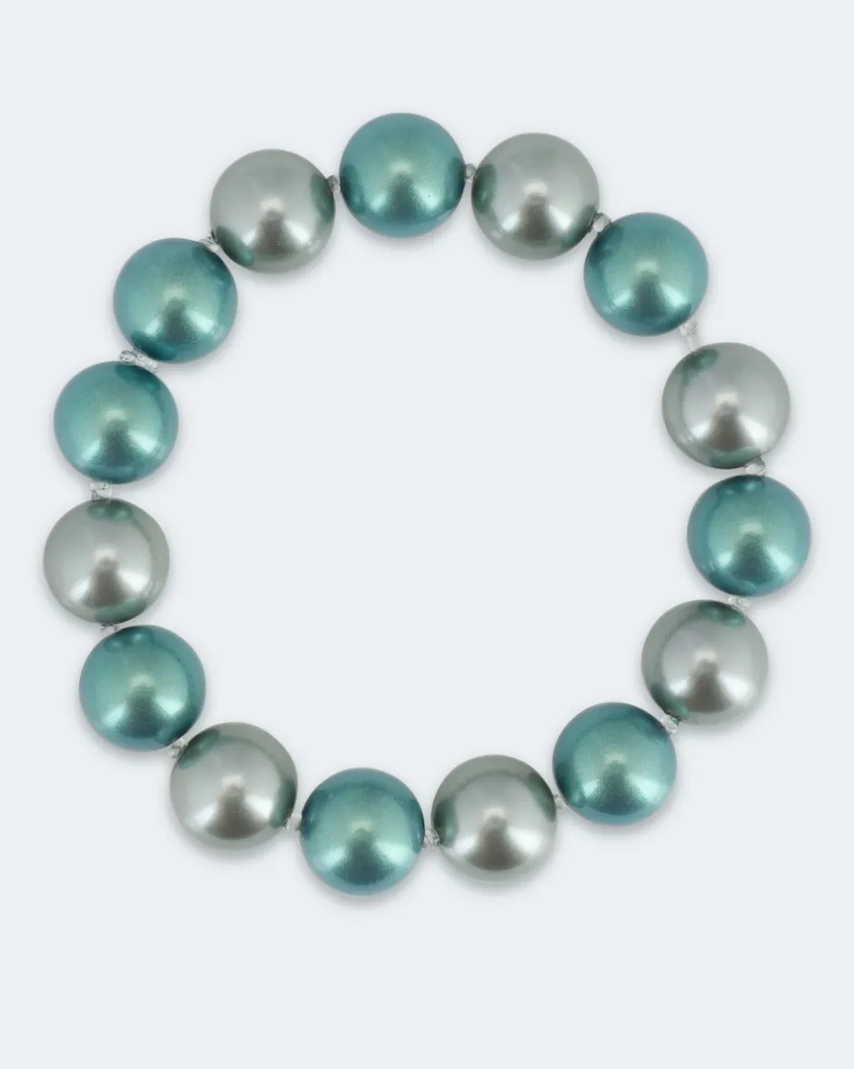 Es handelt sich um hochwertigen Schmuck mit Muschelkernperlen, die genau wie Diamanten mit einer speziellen Technik von Hand in Form geschliffen, in einem aufwendigen Spezialverfahren gefärbt und nachbehandelt werden, um eine erstklassige Farbe und einen wunderschönen Lüster zu garantieren. Das Armband stammt aus der Pfeffinger Schmuckmanufaktur in Pforzheim, die bereits in der dritten Generation fertigt.