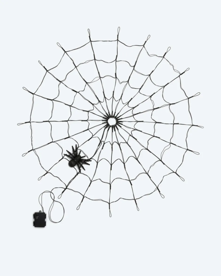 Gruseliges Deko-Accessoire für drinnen & draußen: LED-Spinnennetz für Halloween