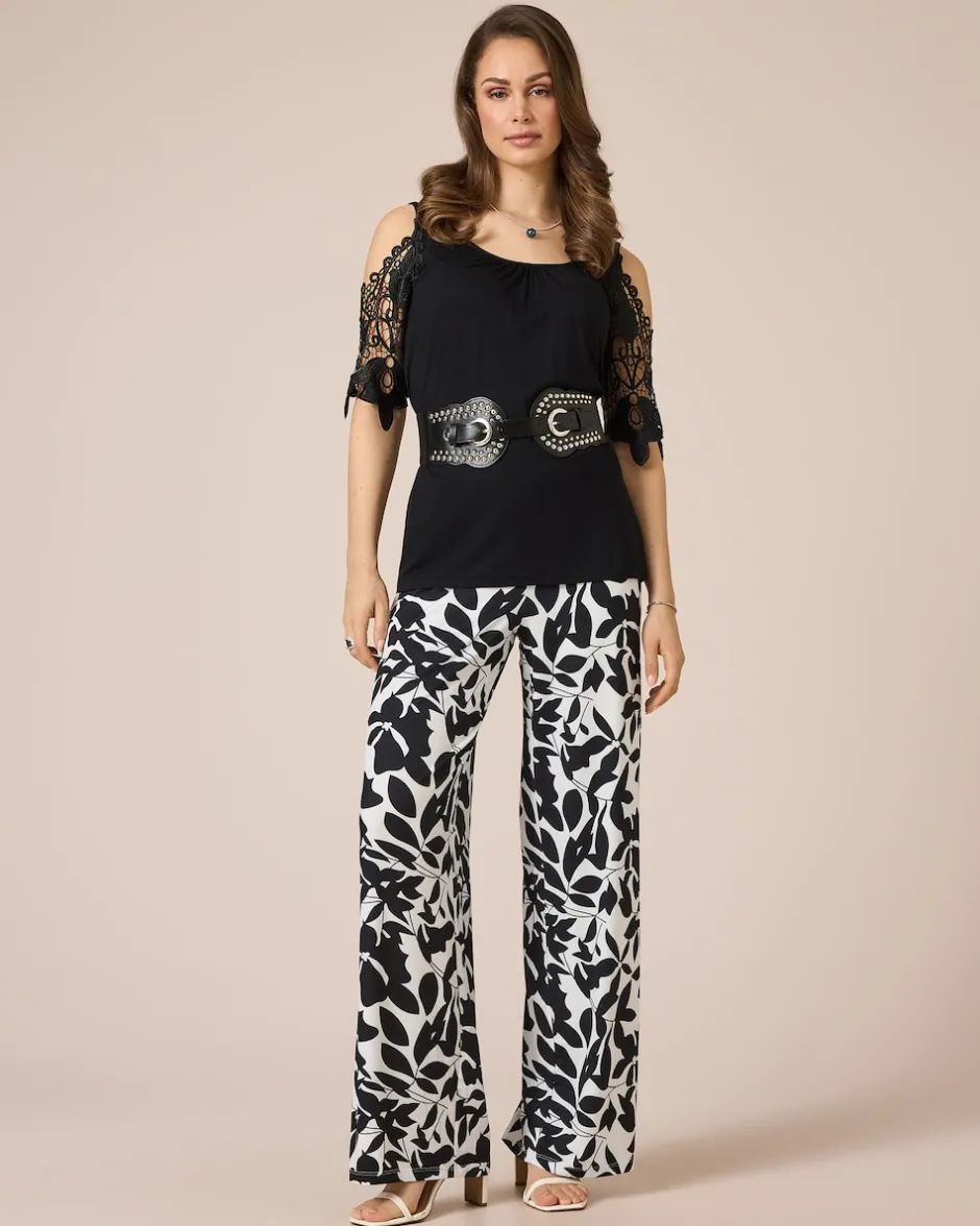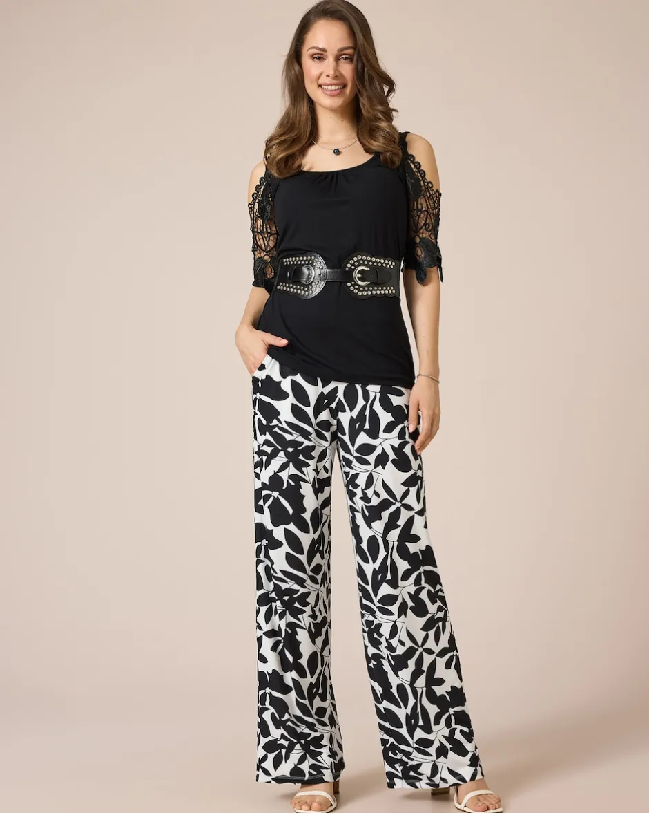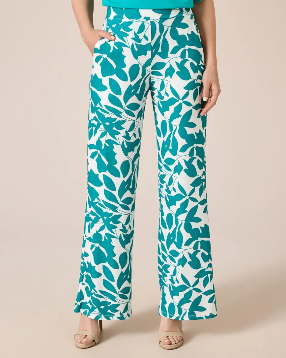 Reinschlüpfen, wohlfühlen und gut aussehen. Die Hose begeistert mit einem modischen Blätterdruck und einem weiten, gerade geschnittenen Bein. Der bequeme Schlupfbund ist hinten gesmokt, sodass die Hose perfekt fällt. Zusammen mit dem weiten Bein hat die Hose einen tollen figurschmeichelnden Effekt. Lässige Seitentaschen machen das Design komplett. Die Jerseyhose gibt es in Kurz- oder Normalgrößen zur Wahl und kann sowohl mit High Heels als auch mit Sneakers getragen werden – Sie geben immer eine gute Figur ab.