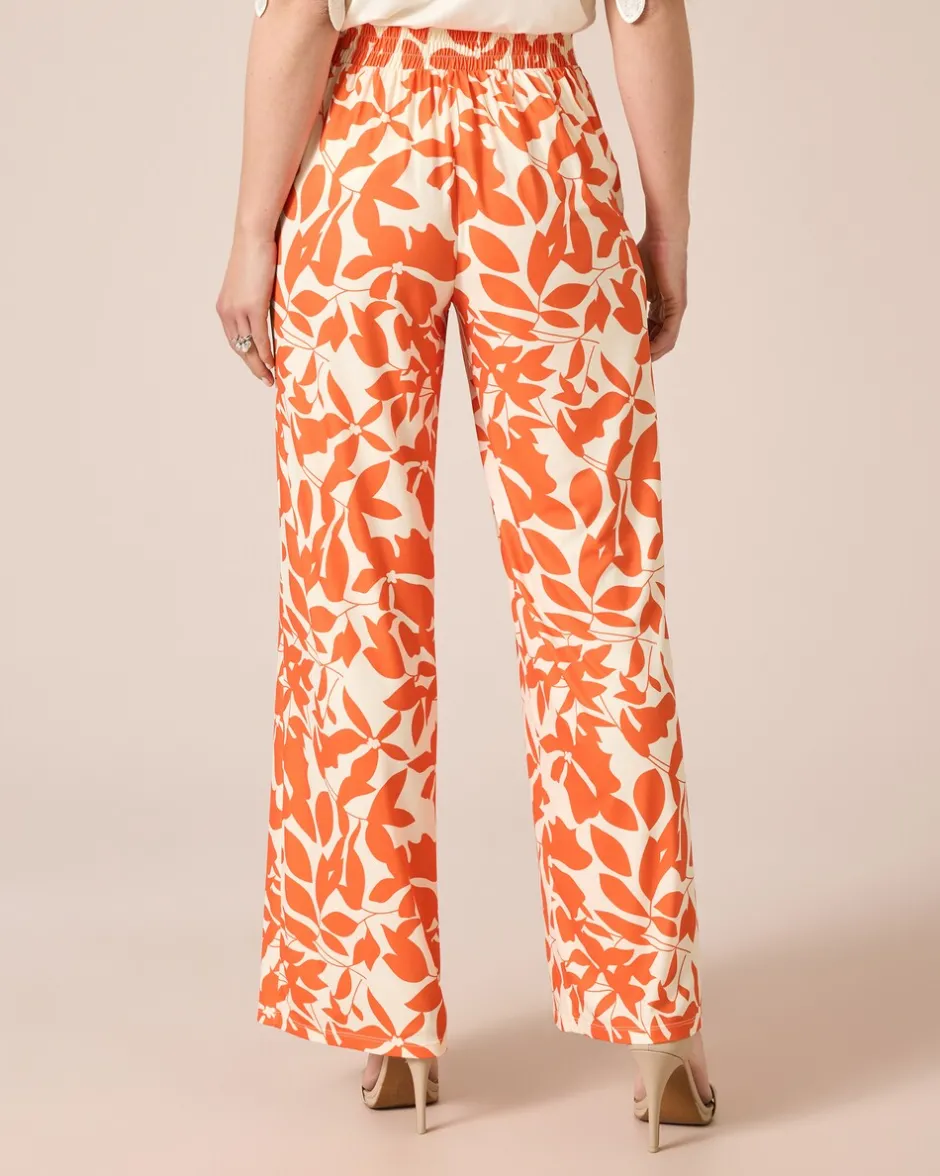Figurschmeichelnde Hose mit Blätterdruck