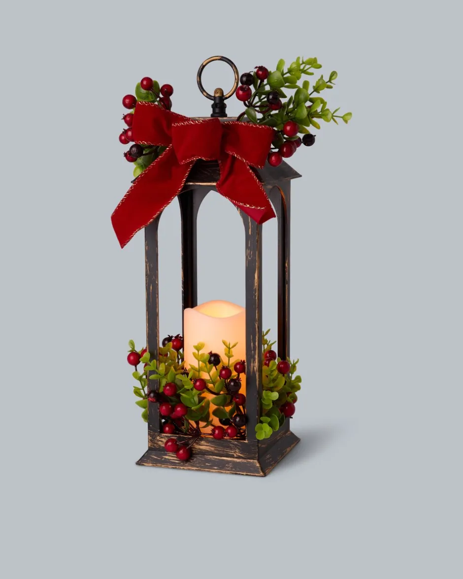 Herbstlicher Hingucker: LED-Laterne mit Beeren-Deko