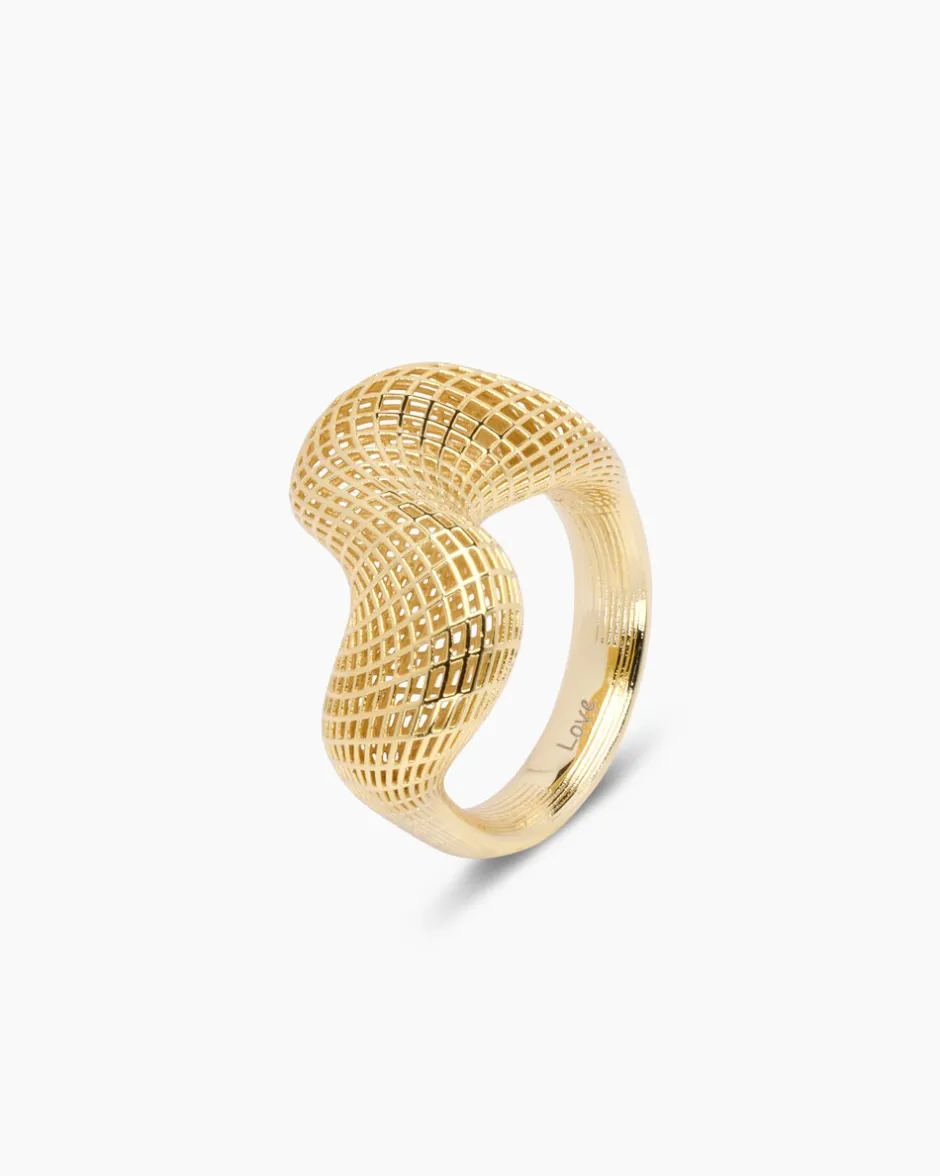 Garantiert immer ein Blickfang ist dieser Ring im raffiniert gewundenen 3D-Design. Der coole Statement-Schmuck ist wahlweise mit gelbvergoldetem oder rhodiniertem Finish erhältlich und passt so bestimmt auch in Ihre Schmucksammlung. Und ein kleines Geheimnis hat er obendrein: Die Innenseite des Rings zeigt eine feine LOVE-Gravur. Ein toller Ring also zum Verschenken – auch an sich selbst.