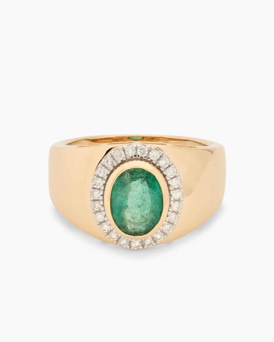 Massiver Goldring mit geheimnisvollem Smaragd & Brillanten