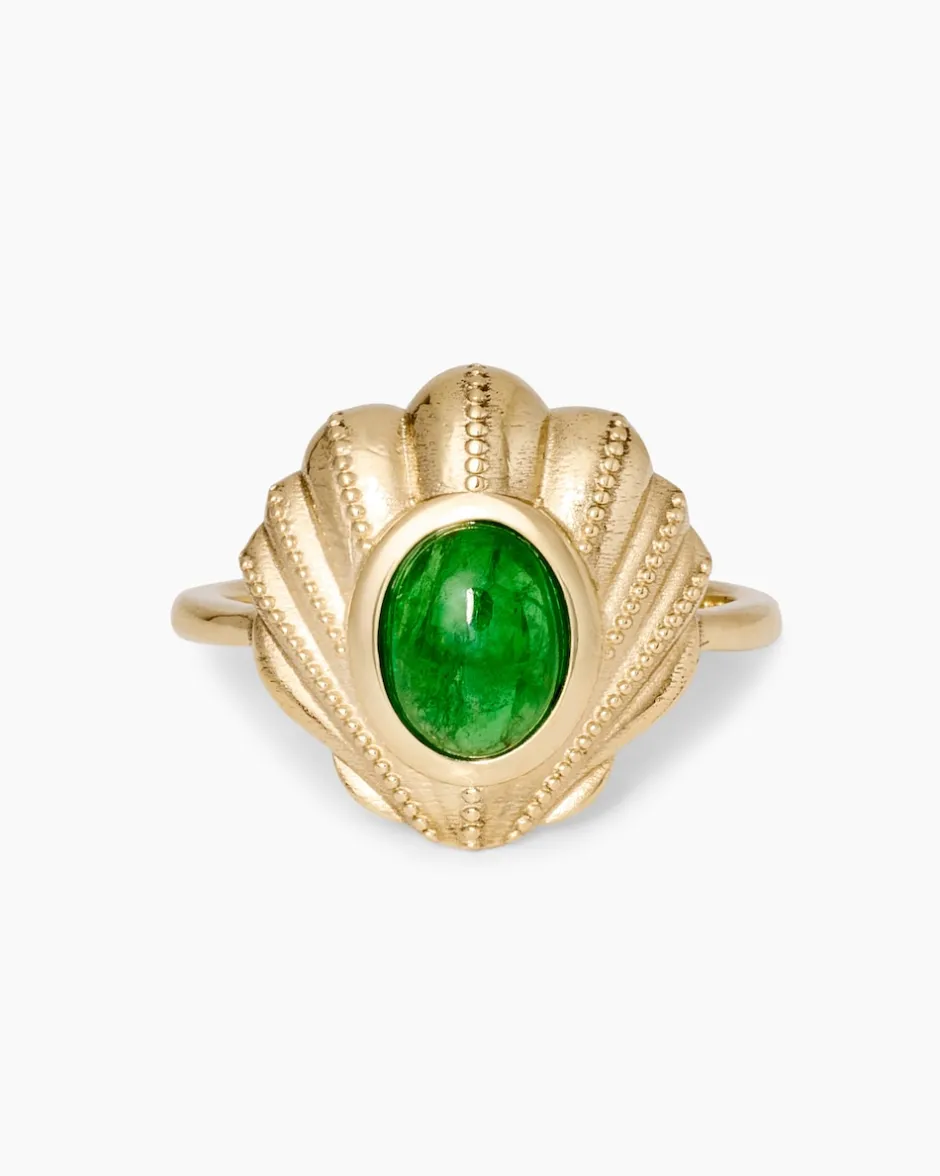 Grüne Eleganz: Tsavorit-Ring im Muschel-Design