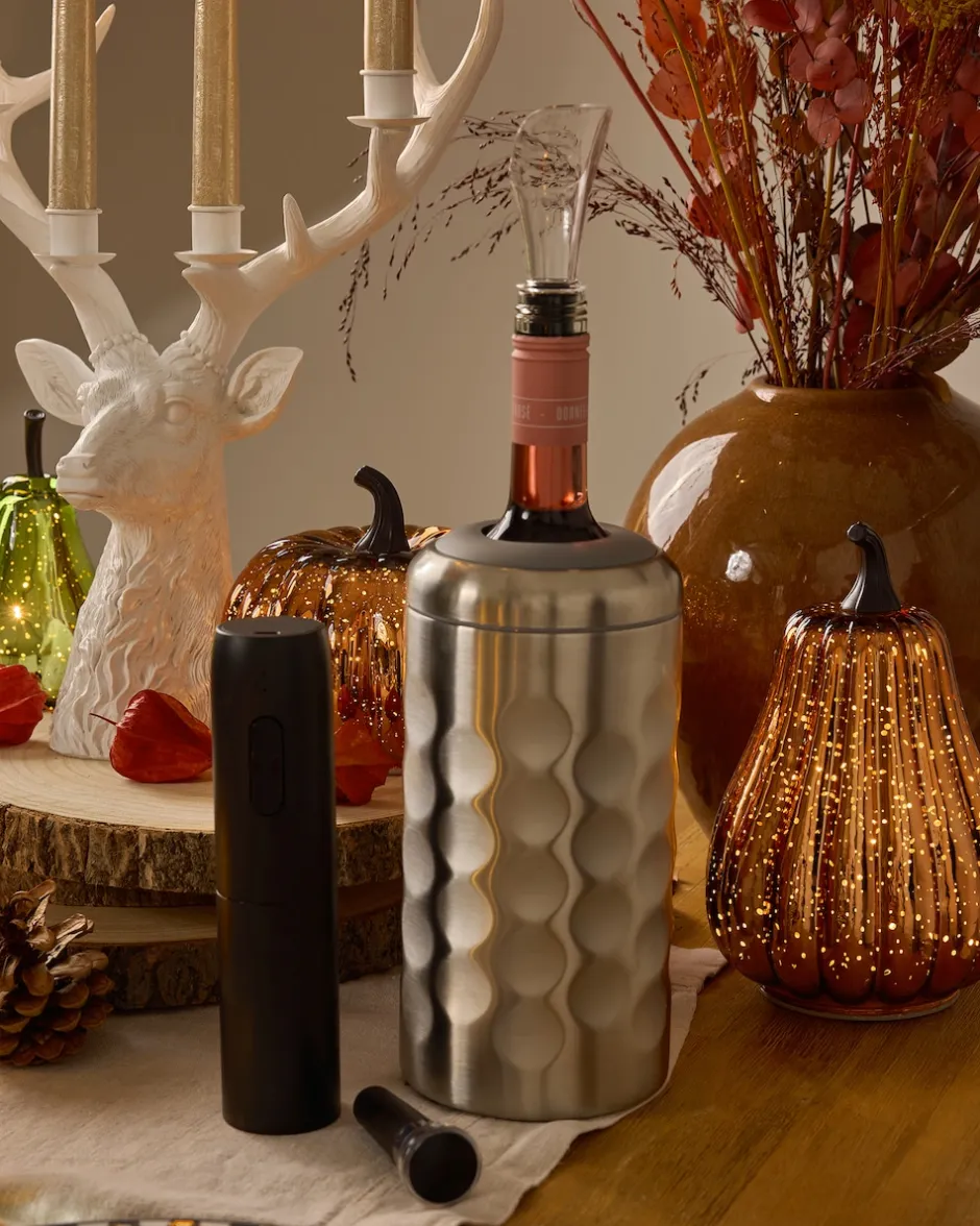Hier kommt eine tolle Idee für Weinkenner und -genießer. Der Weinbelüfter mit Ausschenk-Set von Cucinella gibt dem Wein während der Ausgabe die nötige Luft und lässt per Druck die Flüssigkeit in das Glas fließen. Der Aufsatz ist für Weinflaschen in gängiger Größe geeignet, kann aber auch für andere Getränkeflaschen verwendet werden. Die Belüftung während des Ausschenkens kann Tannine im Wein reduzieren und seinen Geschmack voller machen.