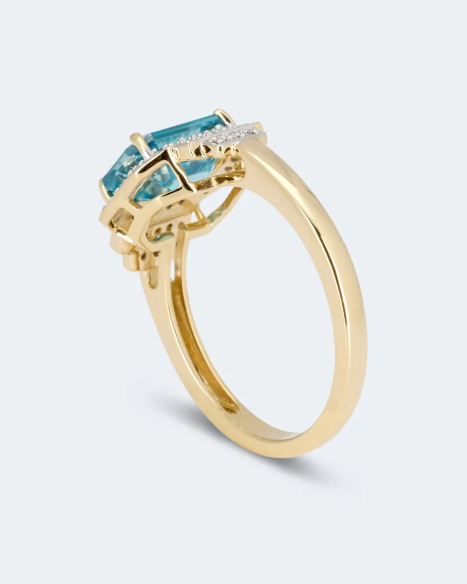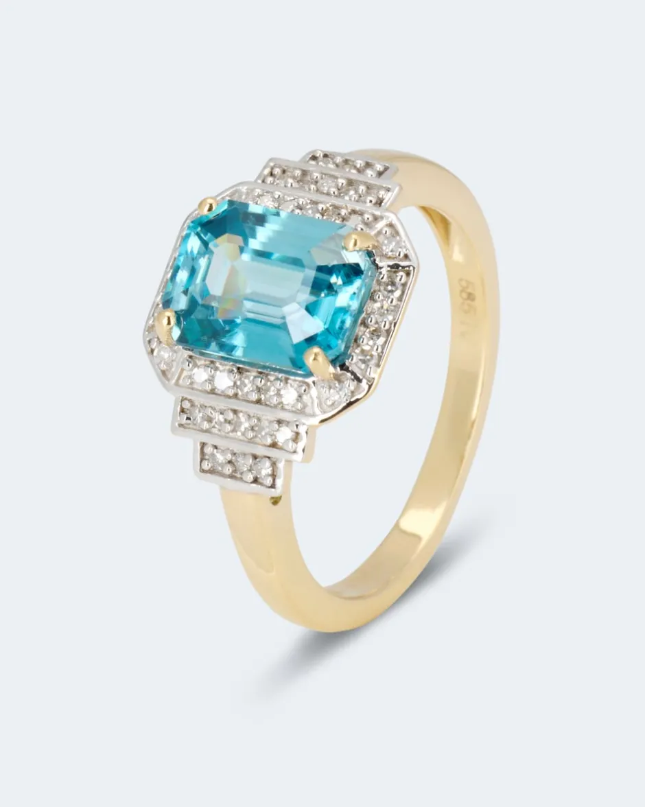 Ein großer Zirkon in intensivem Blau und 38 weiße Diamanten in der Reinheit P1 geben dieser ausdrucksstarken Schmuckkomposition von Harry Ivens einen exklusiven Glam-Touch. Mittig auf dem Ringkopf thront der Zirkon in achteckiger Form, stilvoll veredelt im seltenen Smaragdschliff. Die gleich großen Diamanten umschließen den Mittelstein und bedecken zudem in zwei weiteren Reihen die Ringschultern. Das Funkel-Feuerwerk mit warmem Goldschimmer gibt Ihrem Auftritt Glanz und Klasse. Machen Sie mit diesem Schmuck-Accessoire Ihren Look komplett.