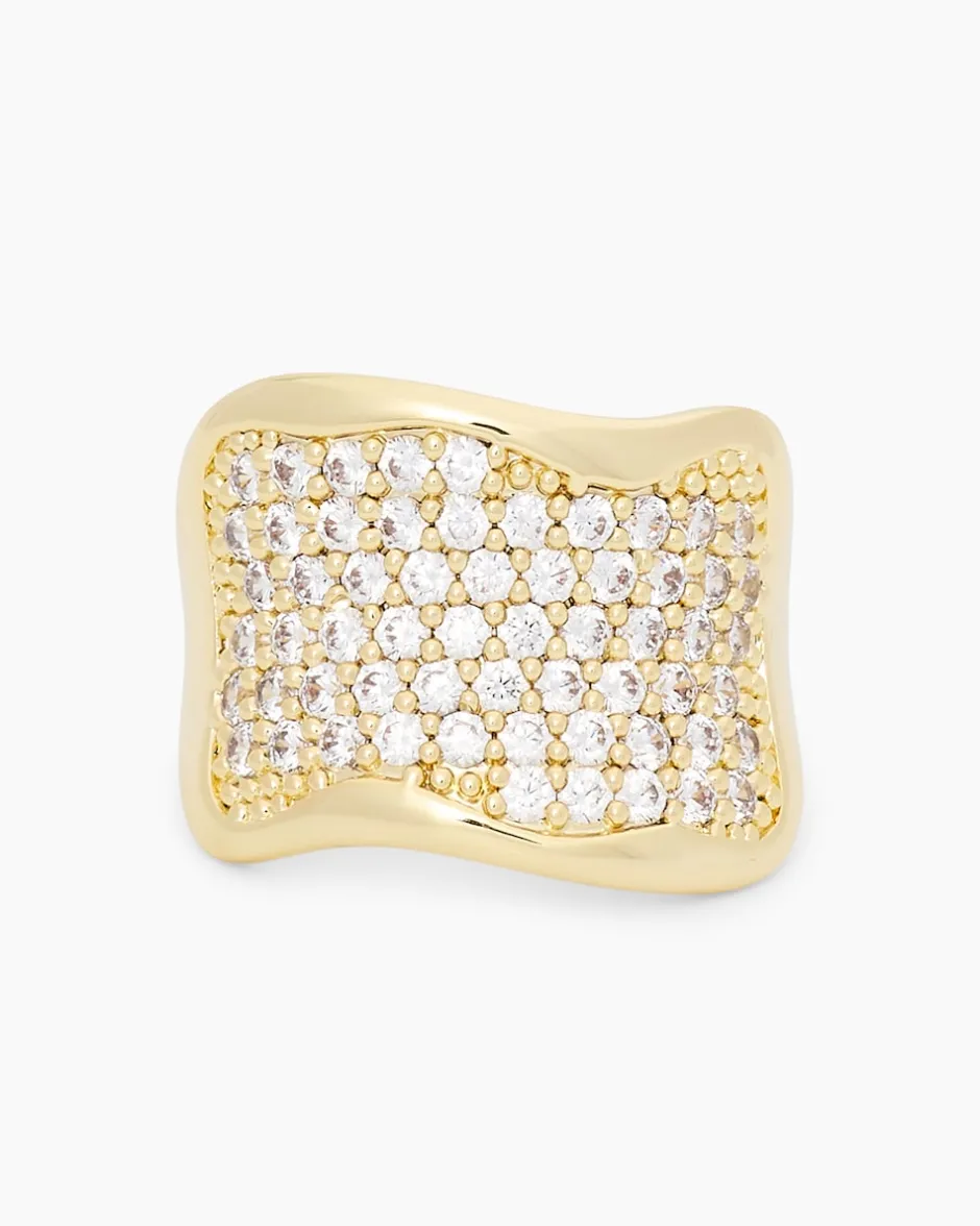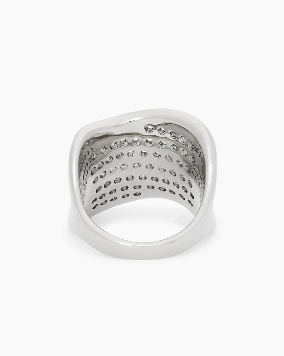 Mit diesem Ring aus der Couture-Schmucklinie von Alfredo Pauly erhalten Sie einen funkelnden Eyecatcher, der jedes Outfit im Handumdrehen veredelt. Das Accessoire besticht mit 60 weiß funkelnden Zirkonia, die echten Brillanten zum Verwechseln ähnlich sehen. Die Steine sind auf dem geschwungenen Ringkopf in versetzten Reihen im Pavé gefasst, was ihre Strahlkraft noch intensiver macht. Wählen Sie das Schmuck-Accessoire im Gelb- oder Weißgold-Look – je nachdem, was Sie lieber tragen.