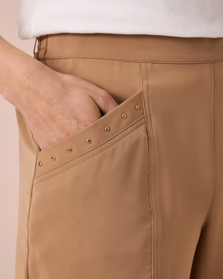 Starten Sie stilvoll in die warme Jahreszeit mit unserer sommerlichen Bermuda. Der weite Schnitt mit dekorativer Naht am Bein sorgt für ein lässiges Flair, während seitliche Eingriffstaschen mit modischer Nieten-Deko einen zusätzlichen Blickfang setzen. Der halbelastische Bund garantiert optimalen Tragekomfort und eine perfekte Passform. Ob in Normal- oder Kurzgröße, diese Bermuda sitzt einfach perfekt. Das feine Gewebe mit edlem Schimmer lässt Sie bei jedem Anlass top-schick auftreten. Kombinieren Sie sie mit einem leichten Top für einen entspannten Tag am Strand oder mit einer eleganten Bluse für einen sommerlichen Abendausflug. Mit unserer schimmernden Bermuda sind Sie immer stilsicher gekleidet.