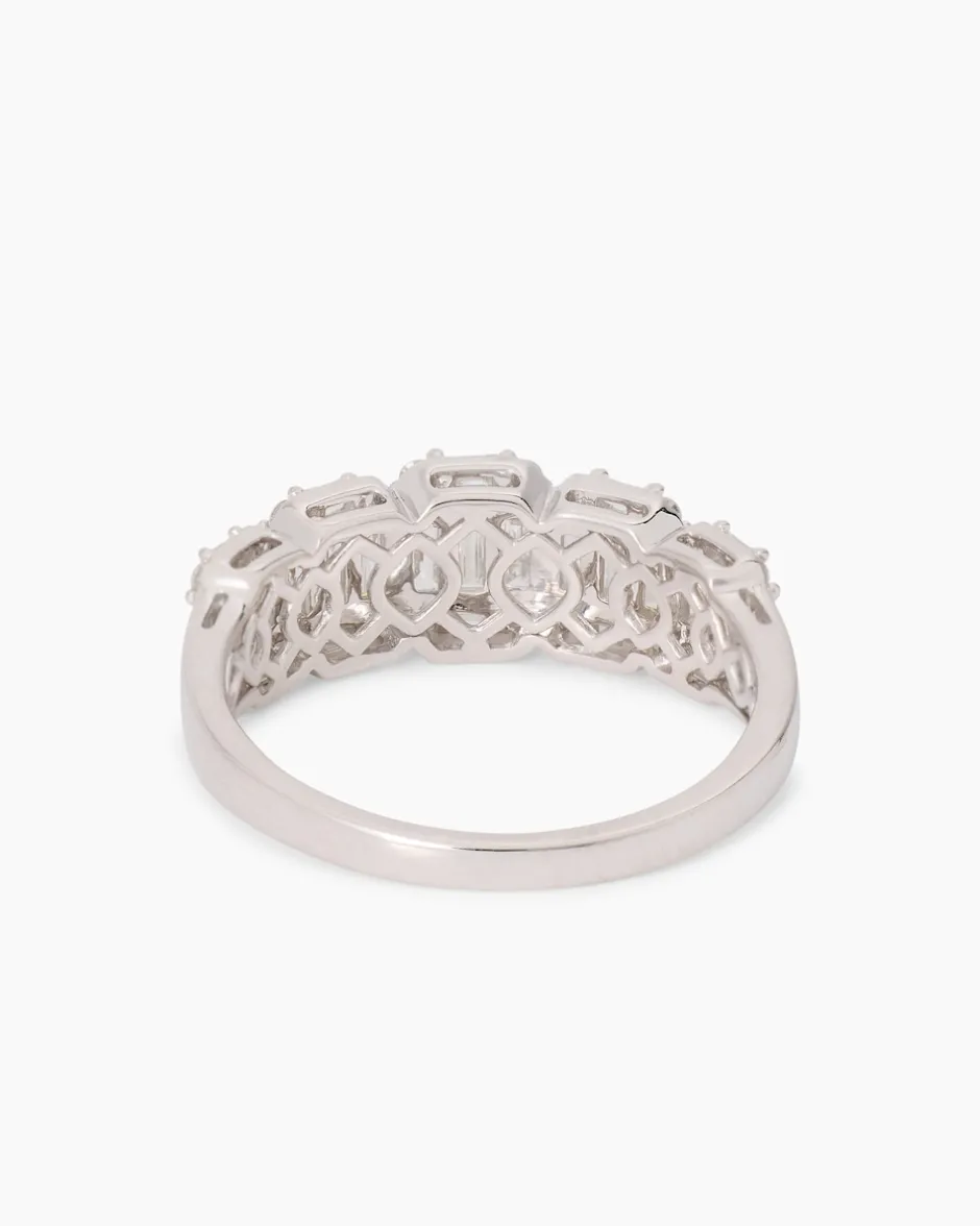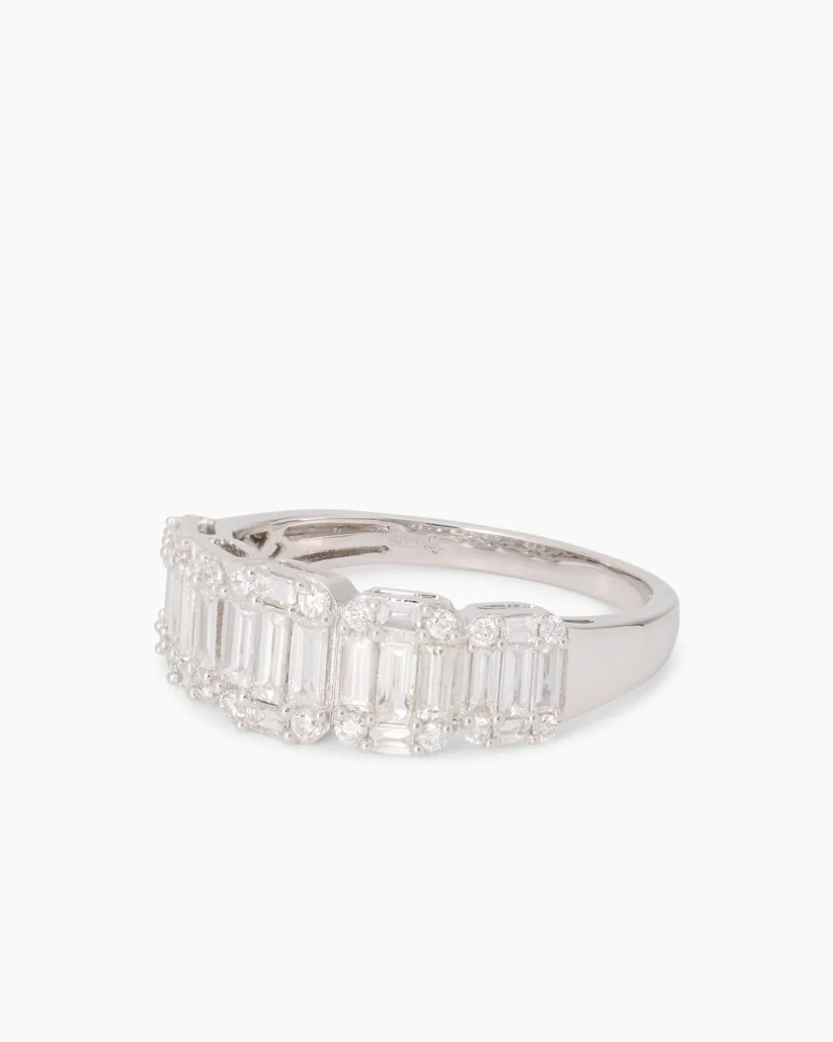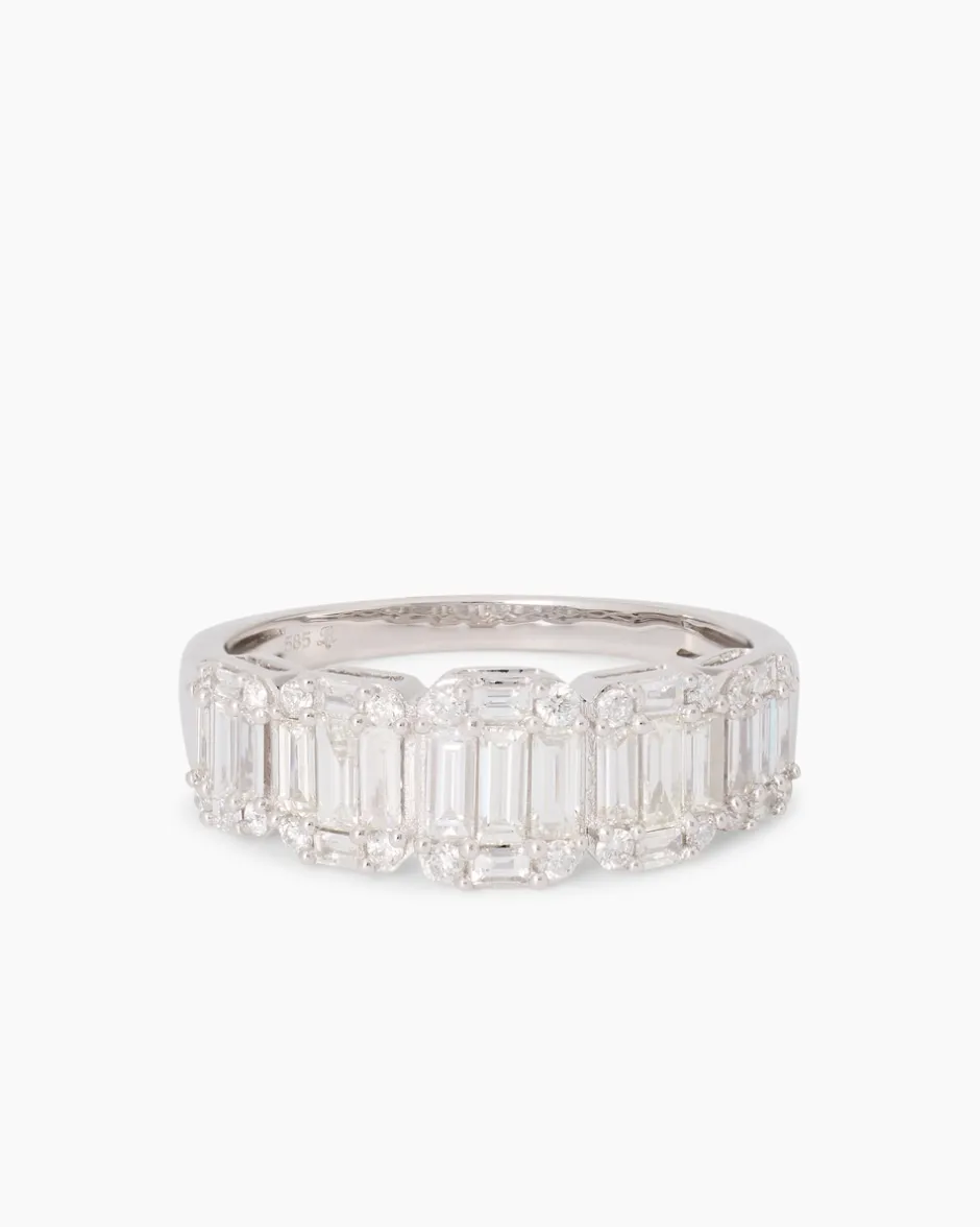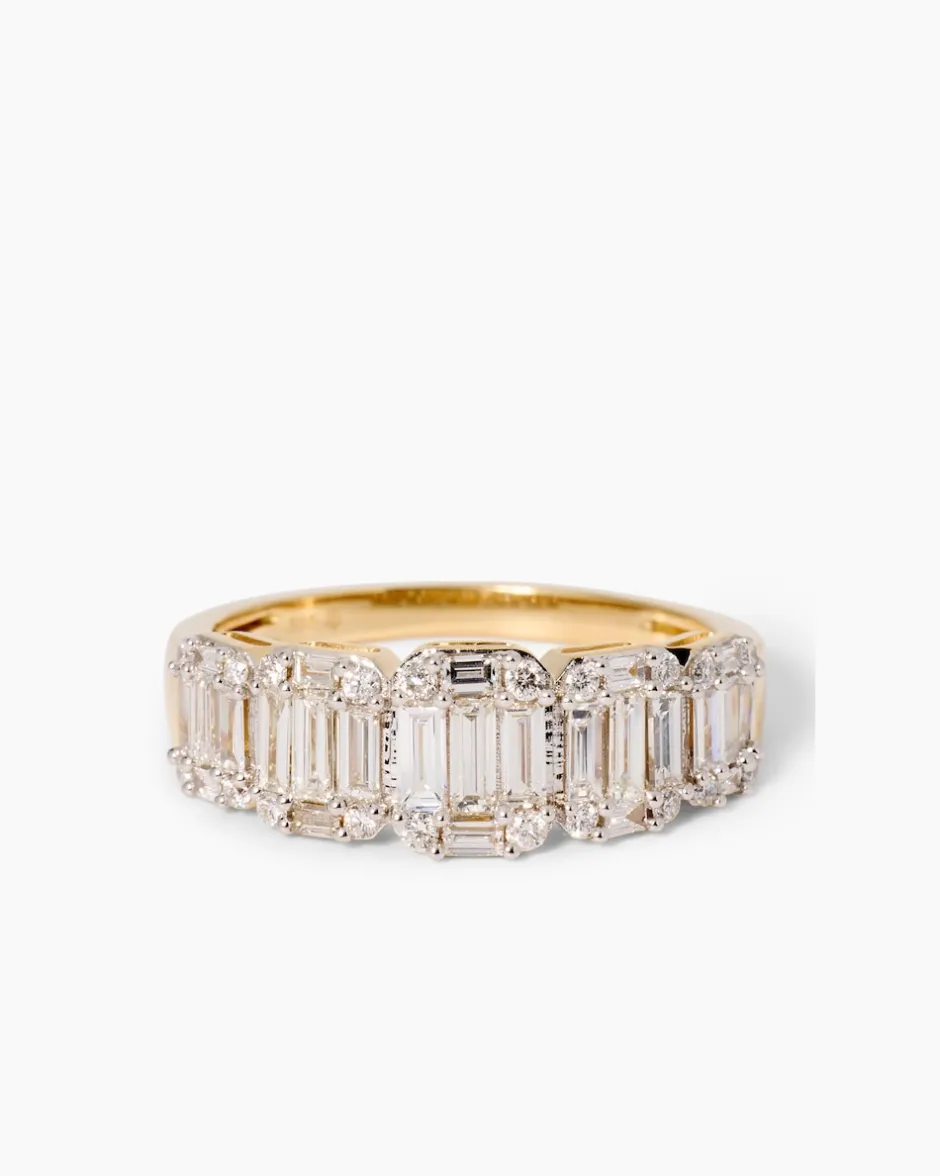 Dieser meisterhafte Ring aus der Diamond Collection kombiniert 20 klassisch runde Brillanten mit 25 Diamanten im Baguetteschliff. Als Ergebnis begeistert ein traumhaft strahlendes Schmuck-Design, das Sie ein Leben lang begleiten wird. Alle Steine haben die Reinheit P1 und eine gute Schliffqualität. Ihr gesamtes Edelsteingewicht beträgt ein sattes Karat. Als weiteres Highlight ist der kostbare Ring sowohl in Gelb- als auch Weißgold erhältlich. Freuen Sie sich auf ein außergewöhnliches und luxuriöses Schmuckstück, das Ihre Personality perfekt unterstreicht.
