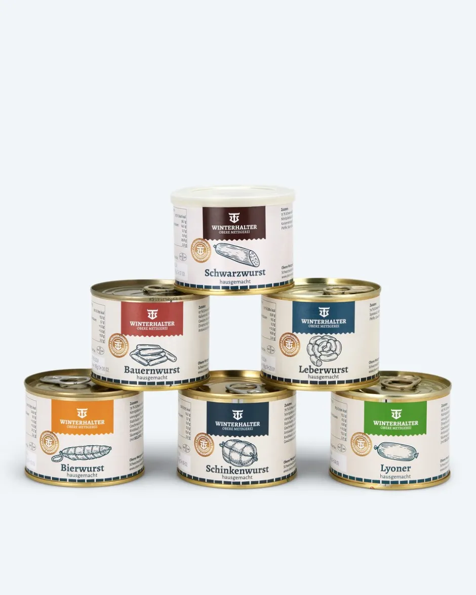 Dieses Hausmacher Wurstdosenset wurde von Kalmerwald exklusiv für HSE zusammengestellt. Es beinhaltet die traditionellsten und beliebtesten deutschen Wurstsorten in den lang haltbaren praktischen Dosen. Jede Sorte ist ideal für Brotzeit, das Vesper oder zum Abendessen. Knuspriges Bauernbrot, Gewürzgurken und ein kühles Bier dazu und alle greifen gut gelaunt zu. Als Variante servieren Sie die Wurst doch mal zusammen mit Brat- oder Salzkartoffeln und Sauerkraut – ebenfalls ein Hochgenuss.