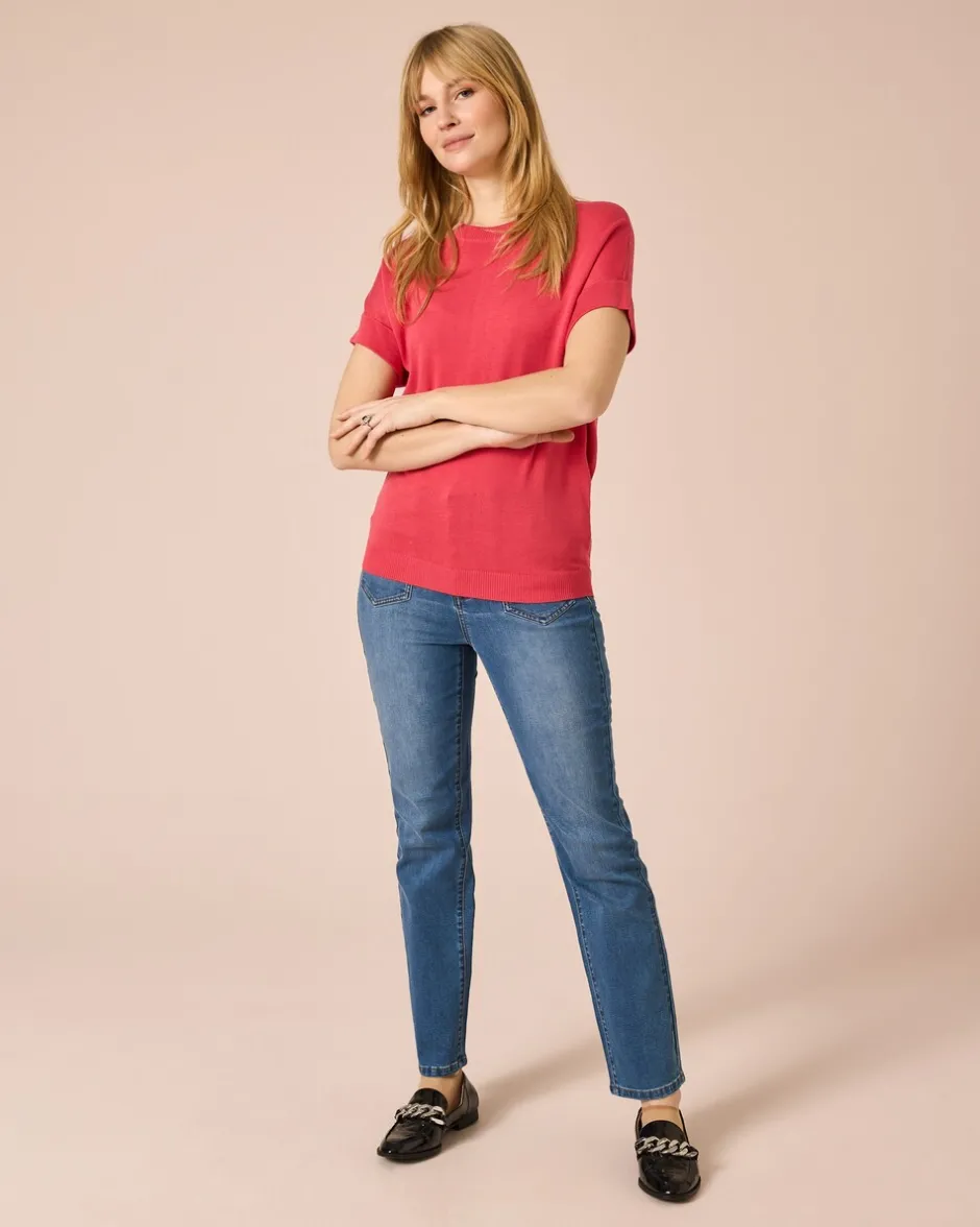 Der lässige Look mit angeschnittenen Ärmeln verleiht diesem Pullover seinen erfrischend jungen Style. Ob zu eleganten Sommerhosen oder legeren Jeans getragen – dieser hübsche Allrounder macht sich immer gut. Der Schnitt ist leicht tailliert mit Rundhalsausschnitt und geradem Saum. Weiterer Pluspunkt: Der weiche, trageangenehme und pflegeleichte Strick mit Viskose. Von Fiora Blue.