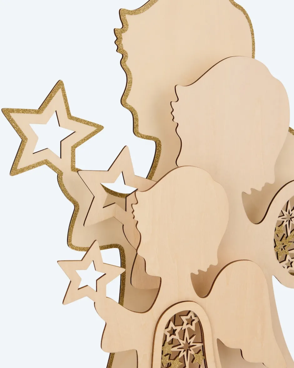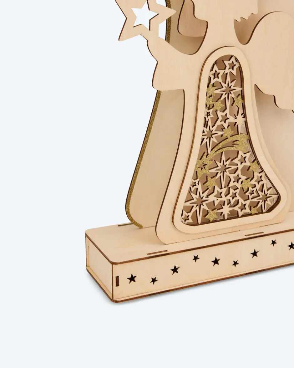 | Lieferumfang: | 1 Holzdekoration „Glitzerengel“, LED-beleuchtet | |