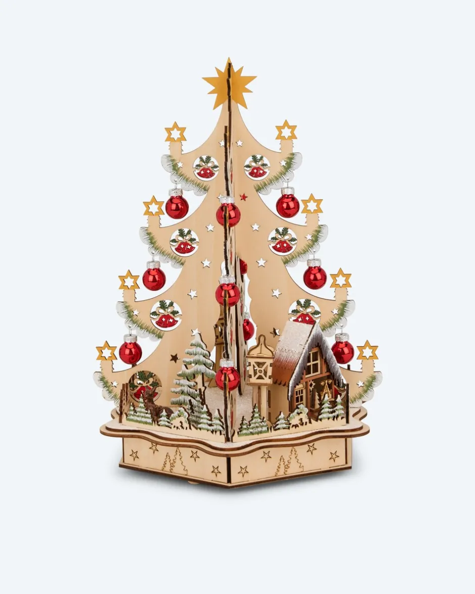| Lieferumfang: | 1 Holzdekoration „Weihnachtsbaum“ mit Kugeln, LED-beleuchtet | |