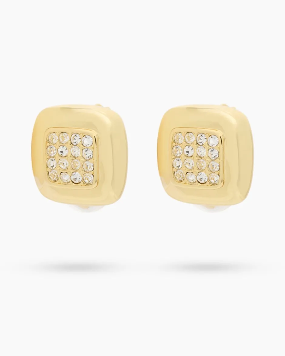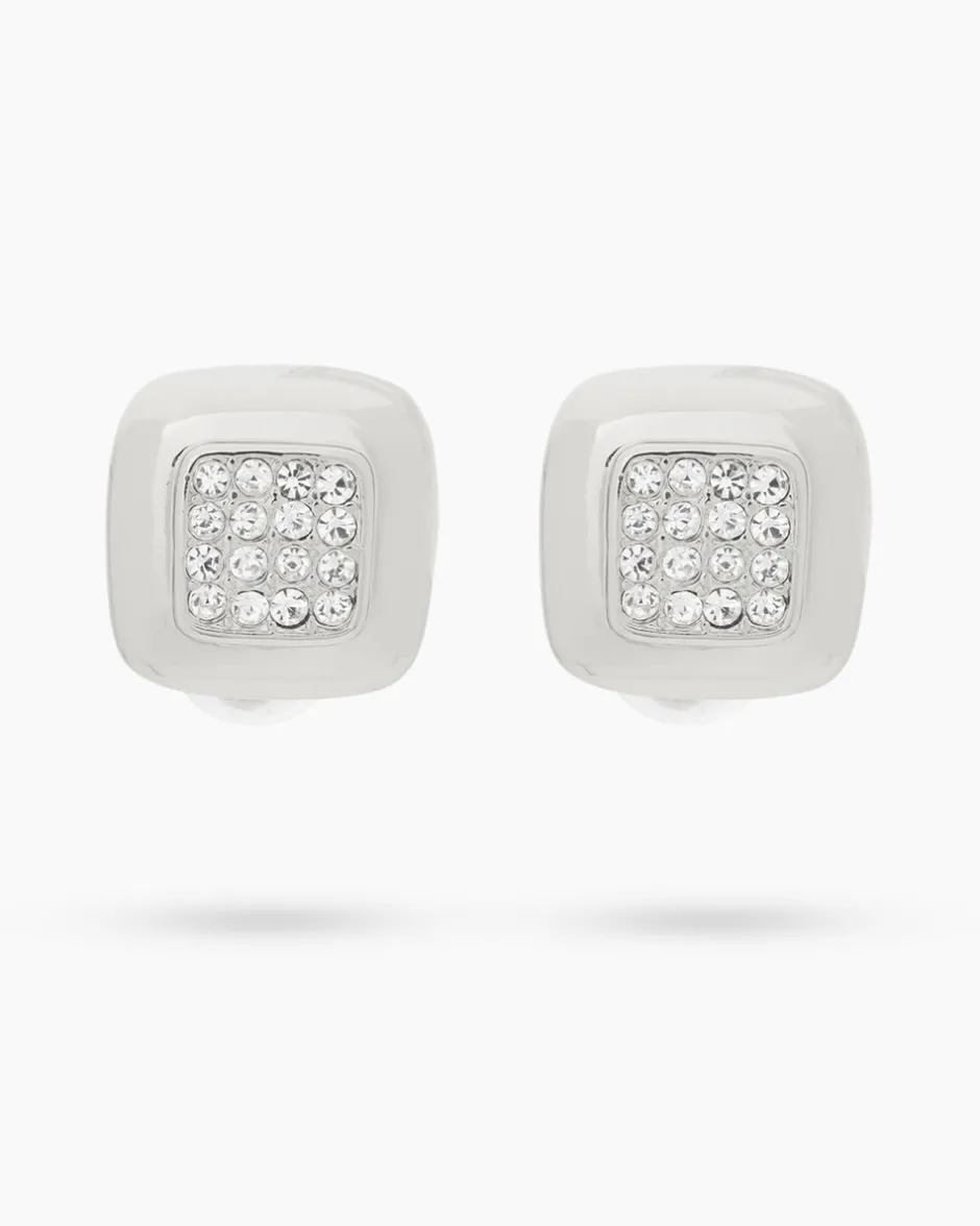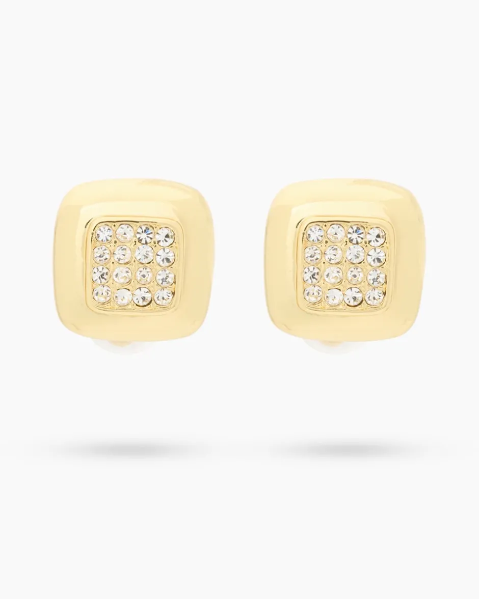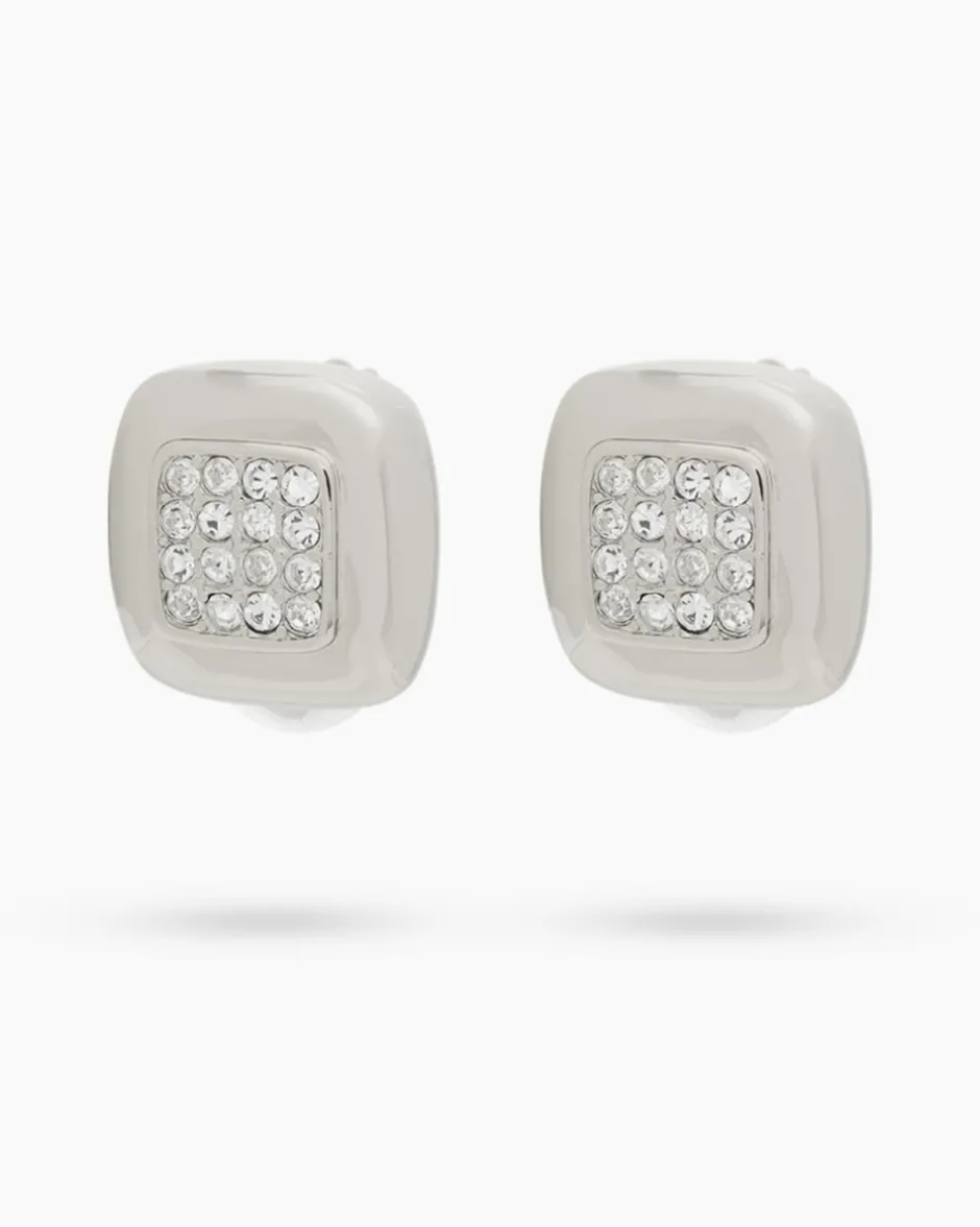 Der viereckige Ohrschmuck von Alfredo Pauly ist mit je 16 Kristallen ausgefasst, die dank der Facettierung herrlich funkeln. Ein eleganter Blickfang, der Ihre Outfits stilvoll ergänzt. Die Ohrclips aus hochglanzpoliertem Messing sind für Sie palladiniert im Weißgold-Look oder gelbvergoldet in Gold-Optik erhältlich. Als Verschluss dient ein Clip mit Silikonverkleidung, der bequem am Ohrläppchen sitzt und auch von Allergikerinnen getragen werden kann.