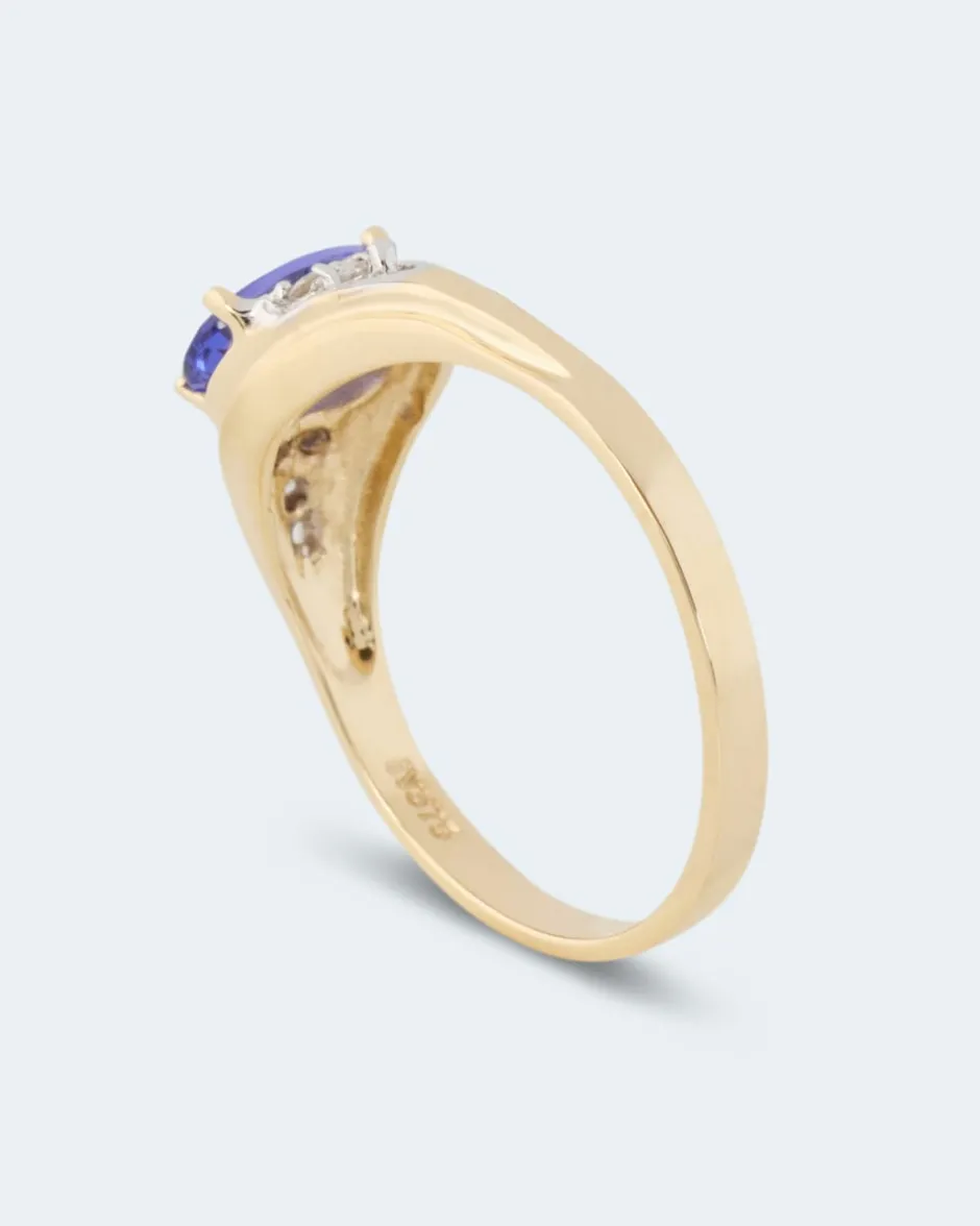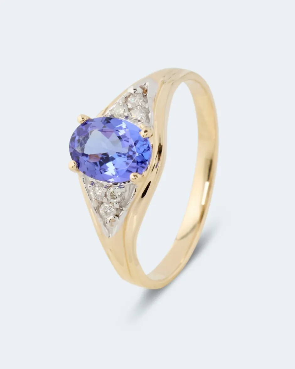 Eleganter Goldring mit Tansanit-Solitär & Brillanten