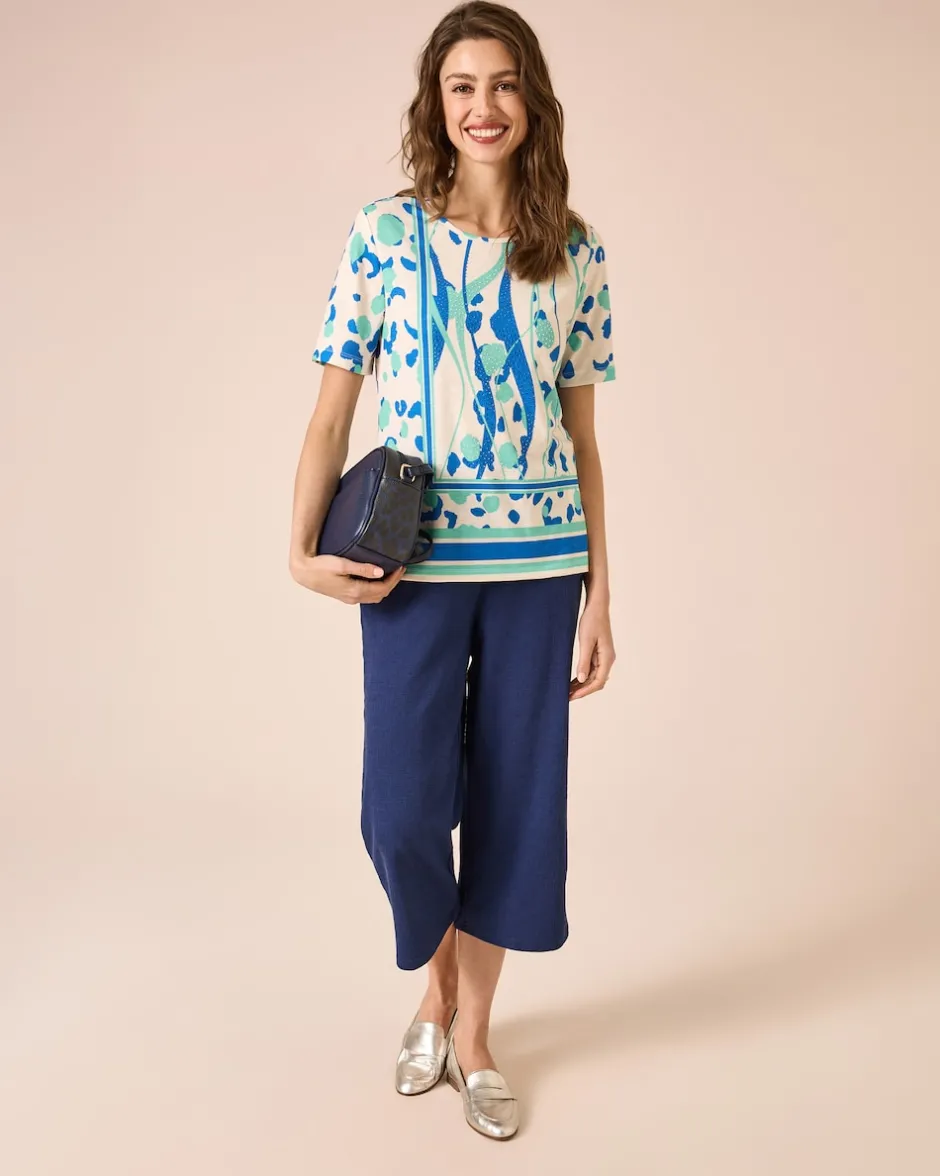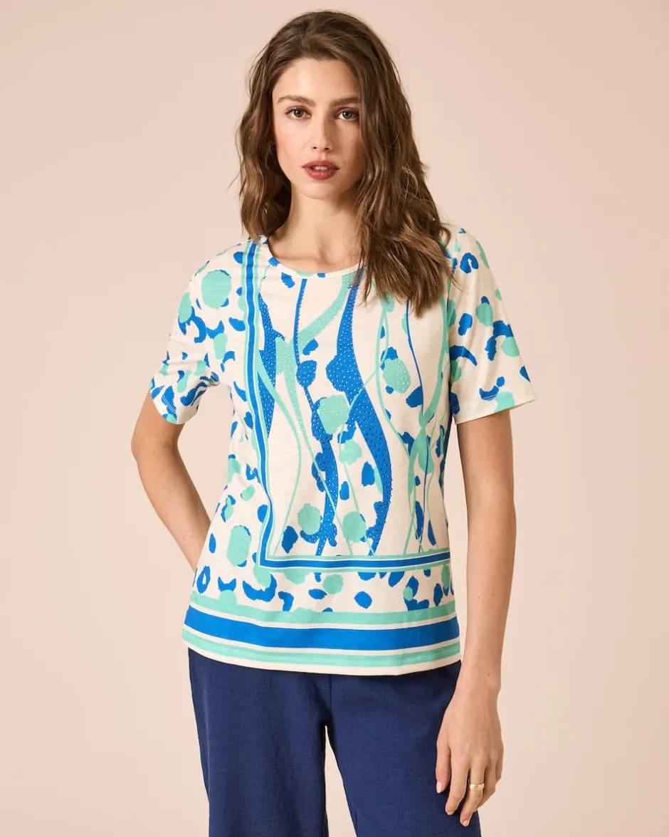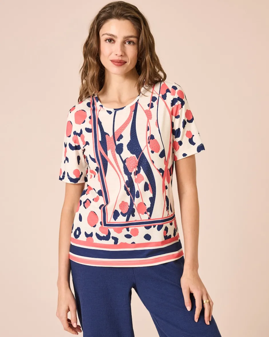 Sein mehrfarbiger Motivmix aus modernen Animal- und Grafikelementen macht dieses Shirt zu einem unwiderstehlichen Fashion-Piece, mit dem Sie viele junge und stylische Outfits zaubern können. Leicht tailliert geschnitten, zeichnet das Oberteil die weiblichen Kurven nach ohne aufzutragen. Für besten Tragekomfort sorgt die atmungsaktive Stretch-Qualität.