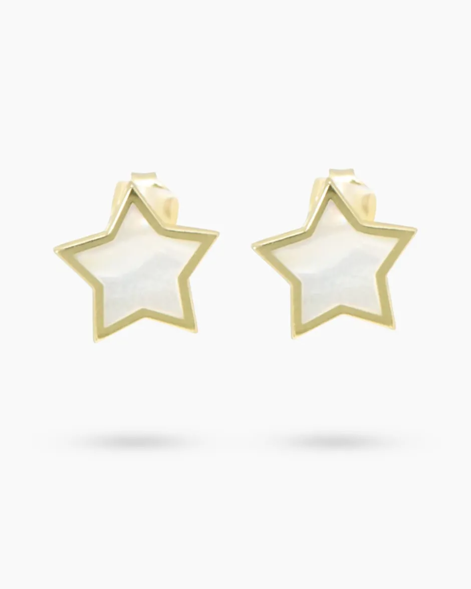 Die Sterne vom Himmel holen – dafür brauchen Sie bei diesen Ohrsteckern nur wenige Klicks. Die zauberhaften Accessoires sind mit je einem großen weißen Perlmutt in Sternform ausgefasst und glatt poliert – so kommt ihr herrlicher Schimmer optimal zur Geltung. Die Perlmutt-Sterne sind in aparte Zargen aus bestem Sterlingsilber in 925er Qualität gefasst. Hier stehen zwei Legierungen zur Wahl: silberweiß rhodiniert für den cleanen Weißgold-Look oder gelbgoldplattiert für eine sonnenwarme Gelbgold-Optik.